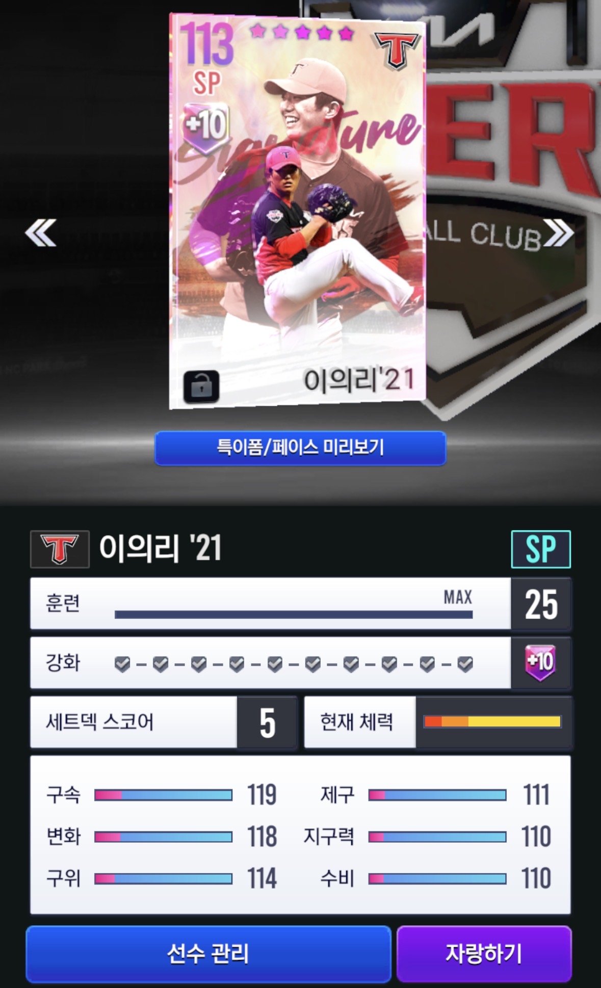현재 시그 이의리 10강해서 쓰고 있는데,