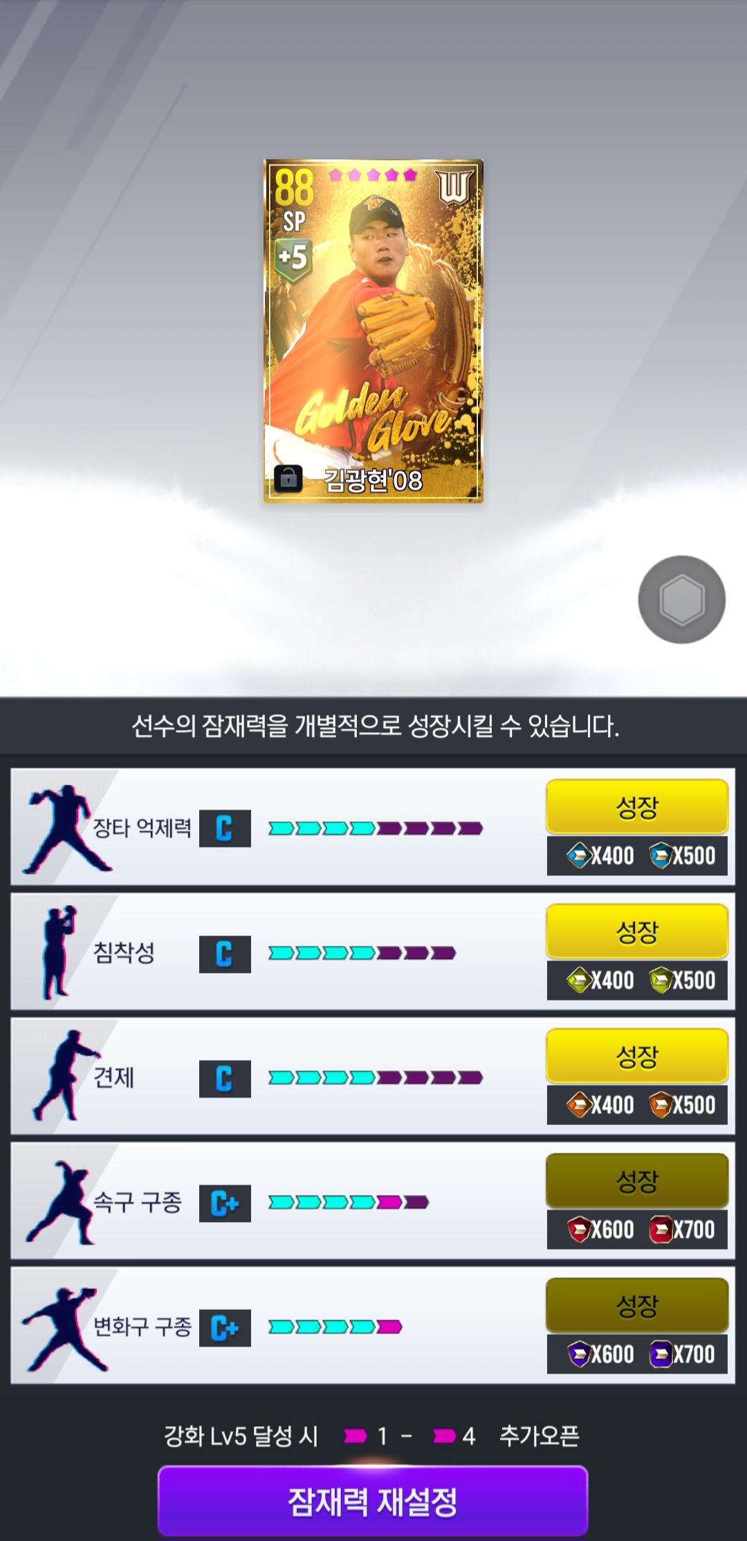 몇일전에 장타억제력 1칸 변화구 4칸이었는데