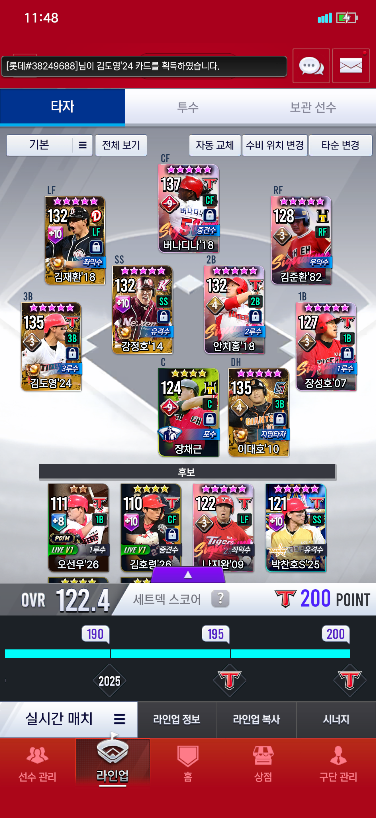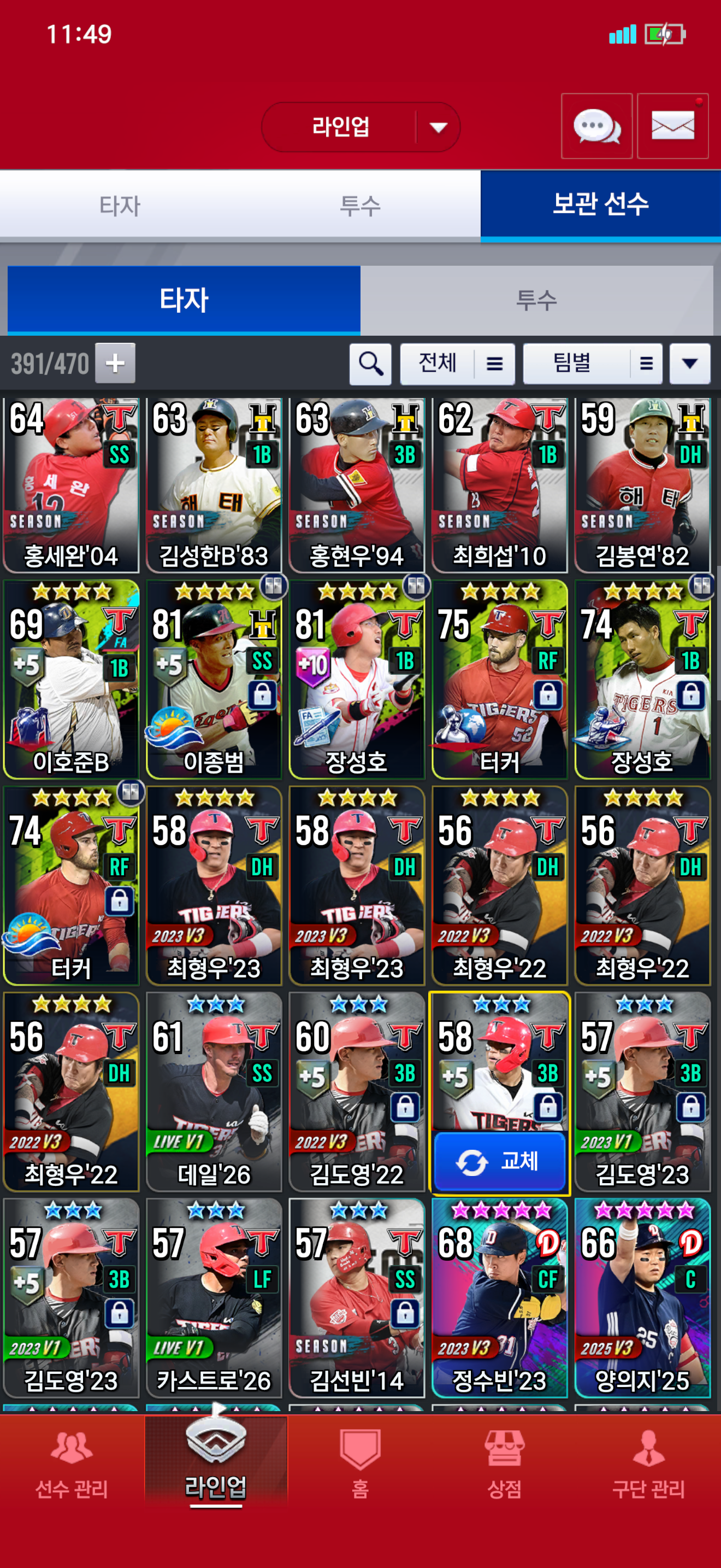 어케할까요 참고로 1루는 좌해 장성호쓰려고 각성 대기중이고, 14병호도 있긴한데 18이 아니라서 그냥 두고있습니다.
