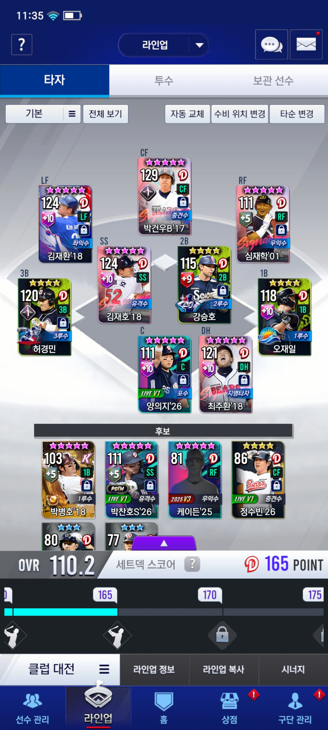 18국재환 18국의지 18주딱 18김재호 18박뱅 이렇게 18덱으로 가볼려고 하는데 옳은 방향성일까요?