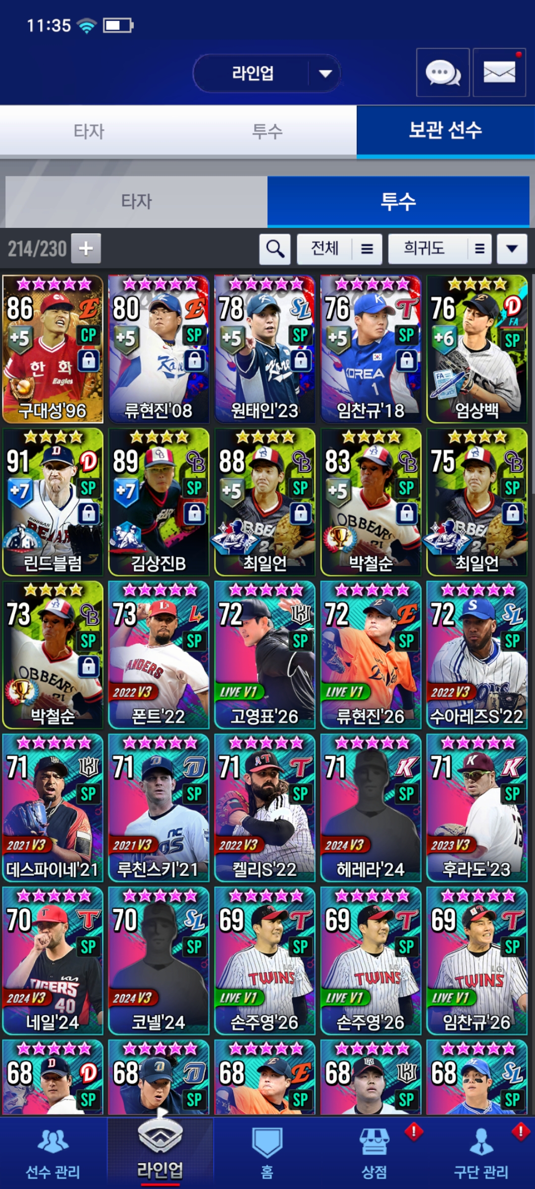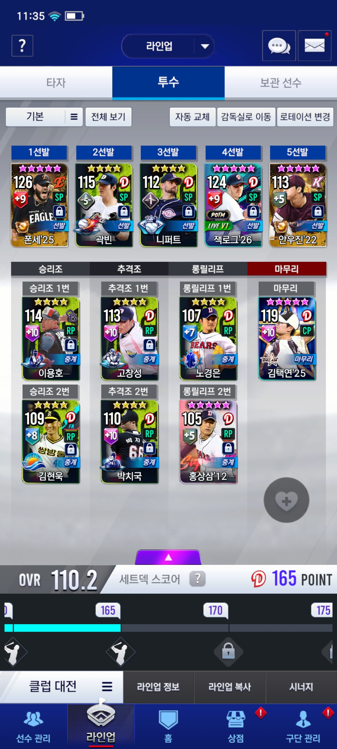 96구대성은 혹시 써도 되나요..빅겜 진필중 뽑는게 베스트겠지만 너무 어렵기도 하고 올택연 스탯이 별로라