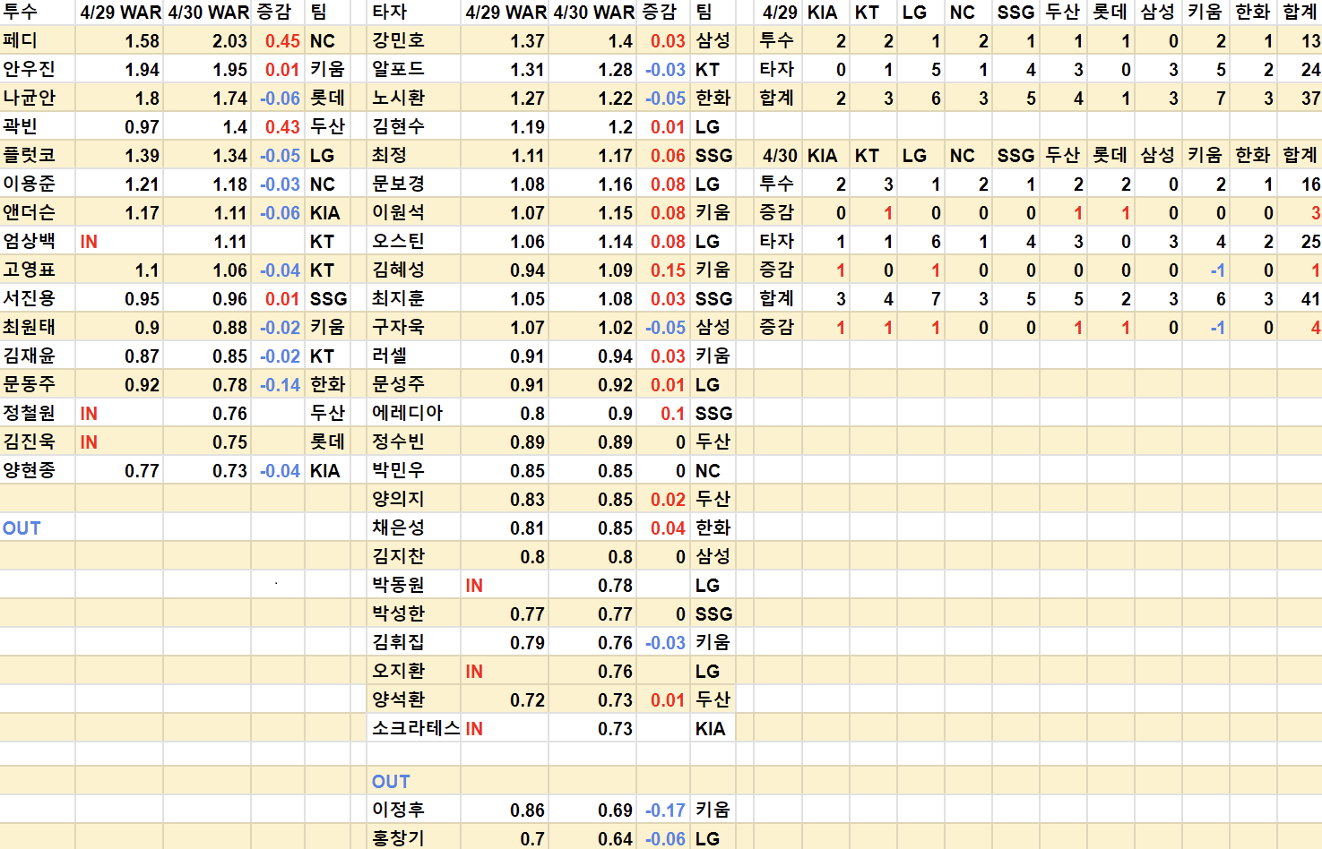 - 5. 투수 WAR 0.73 ↑