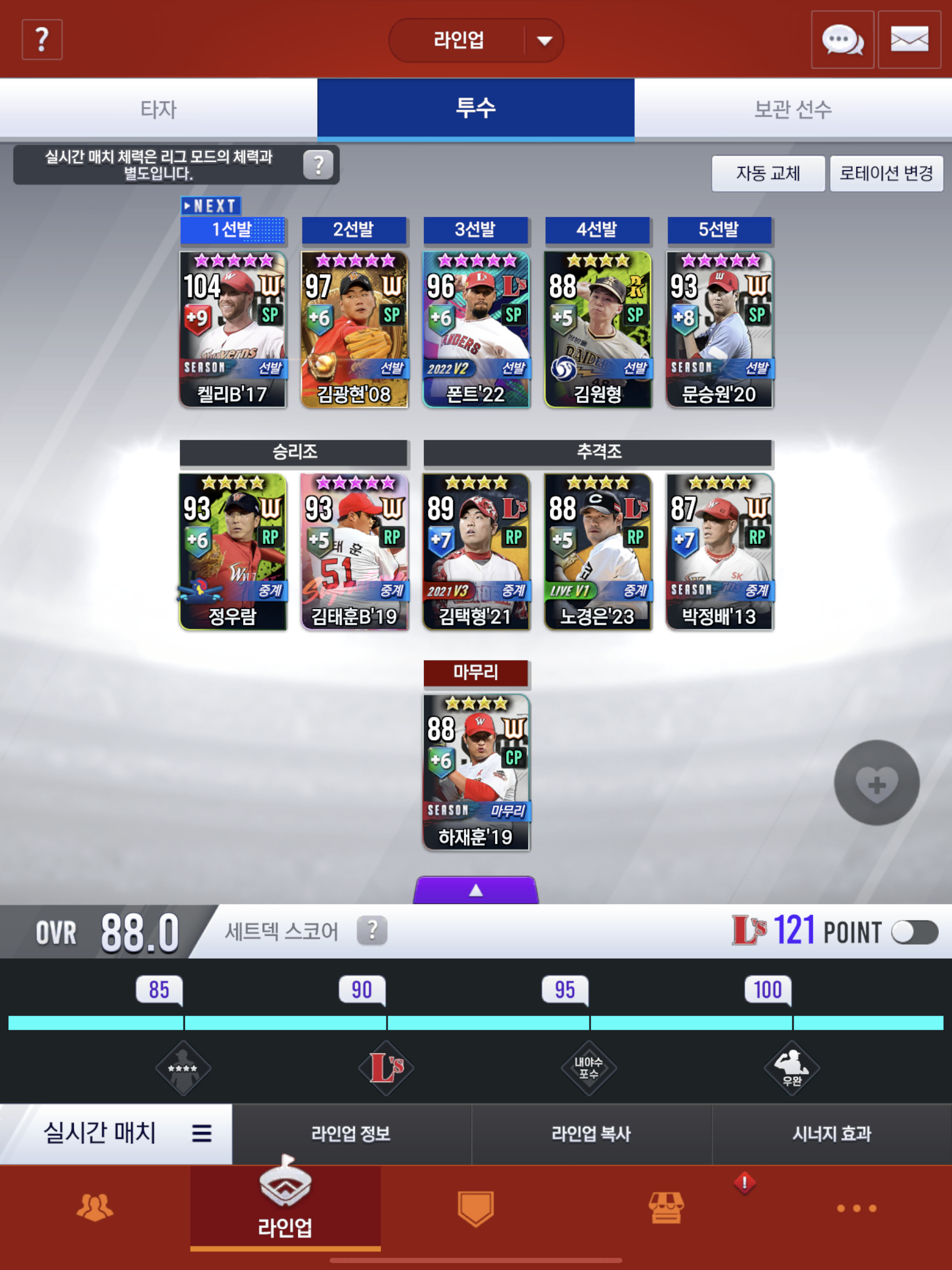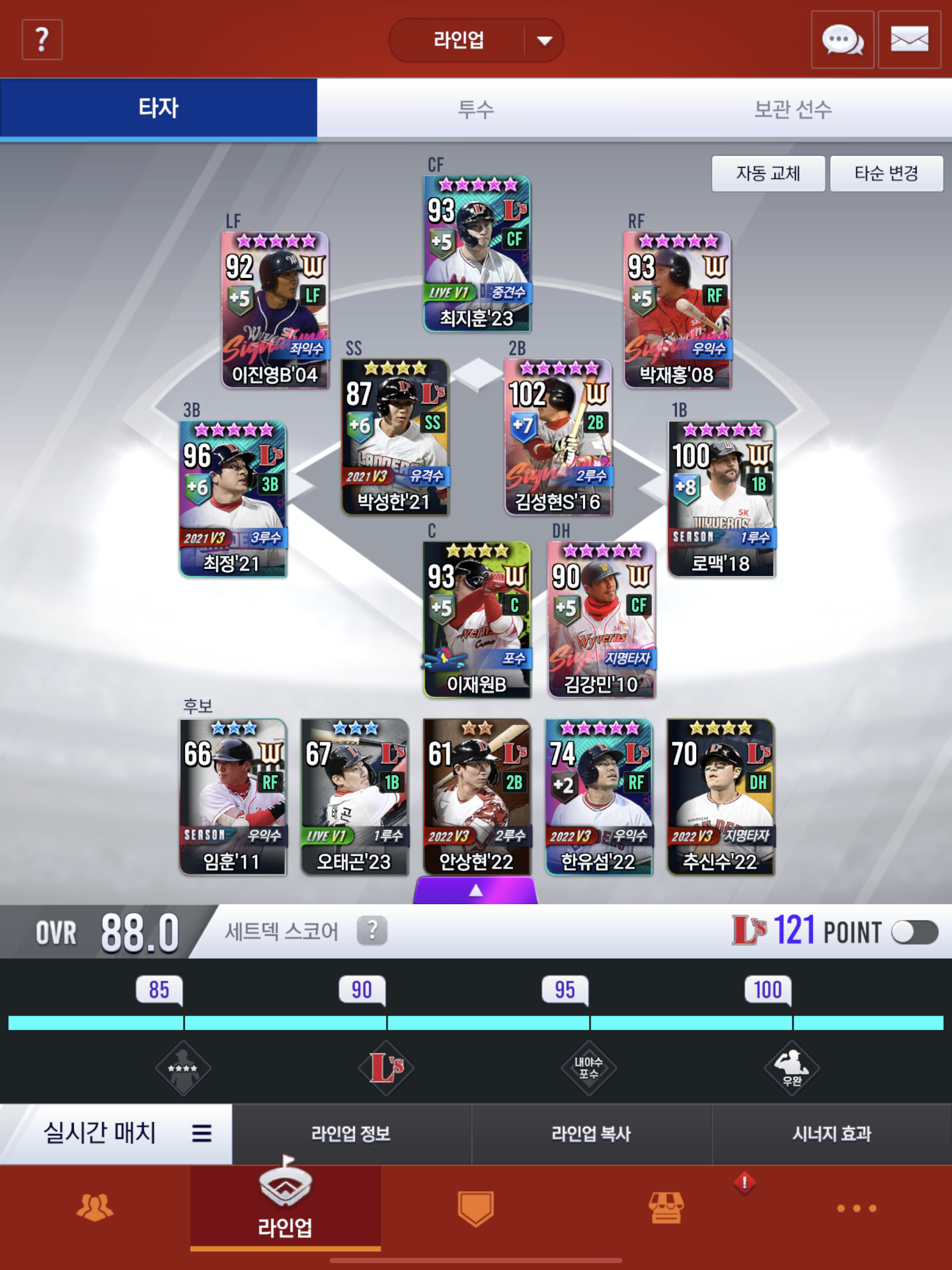 이번 이벤트 시그 선택 룰렛을 돌리고 있는데요.. 전 개인적으로 선발투수 전력이 약간 떨어진다고 생각해서 선발을 보강할 계획이었습니다. 근데 18 한유섬 시그 걸렸는데 능력치가 굉장히 매력적이긴하더라고요.. 어떻게 해야할까요 훈수 부탁드립니다.. (참고로 유격수 4성인데 안 뽑는 이유는 이미 라이브 박성한 5성 뽑아둬서 계승할 수도 있고 골글 모와서 유격수랑 포수 노릴 생각이기 때문에 아직 뽑지 않고 있는겁니다.)