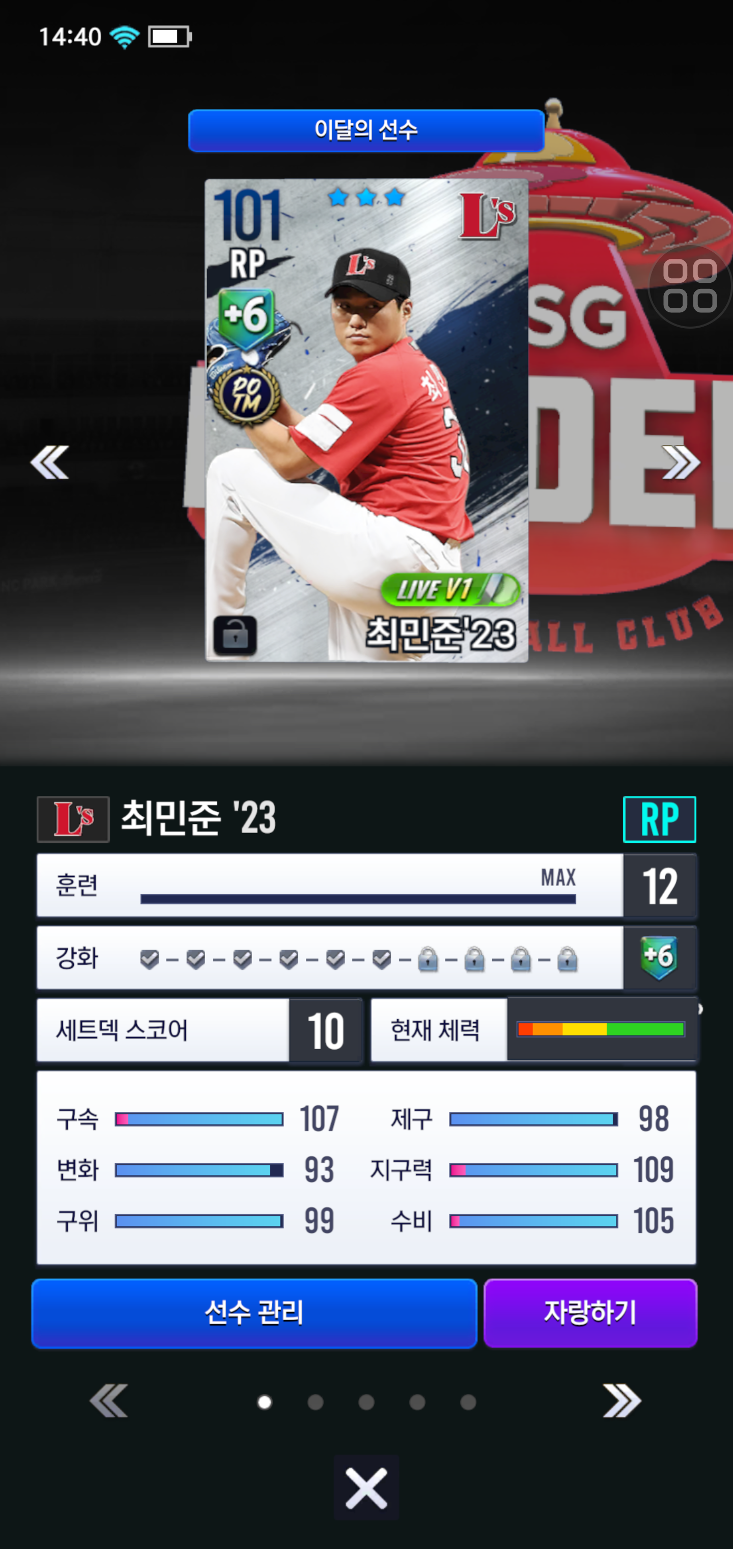 불펜으로 쓸까 아니면 강화재료로 갈아버릴까 생각 중에 셋포가 좋아서 놔뒀는디 이달의 선수 됬네 ㅋㅋㅋㅋ