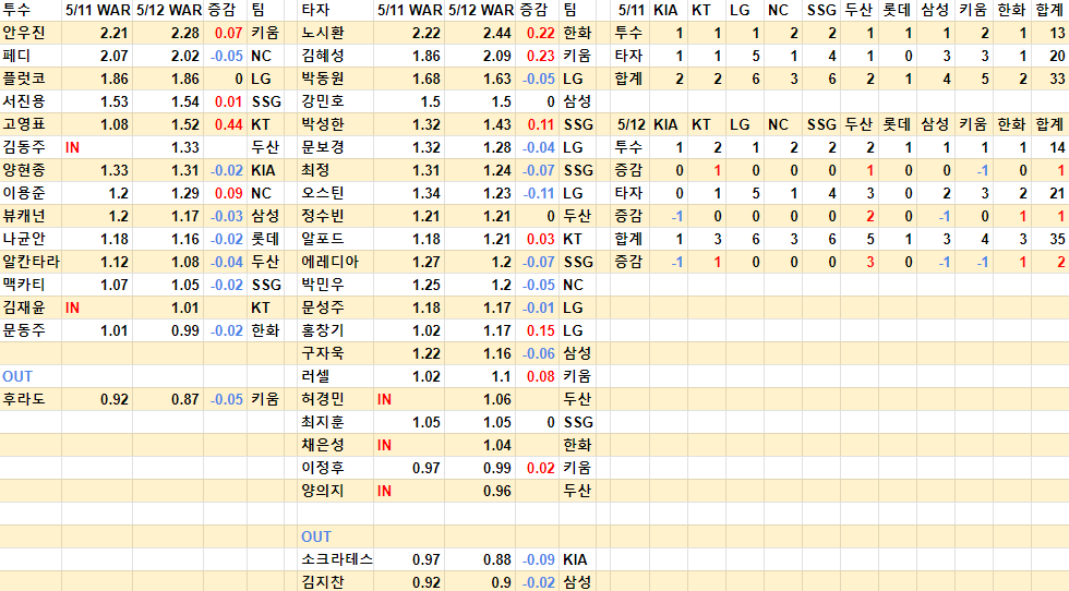- - OUT : 소크라테스(KIA), 김지찬(삼성)