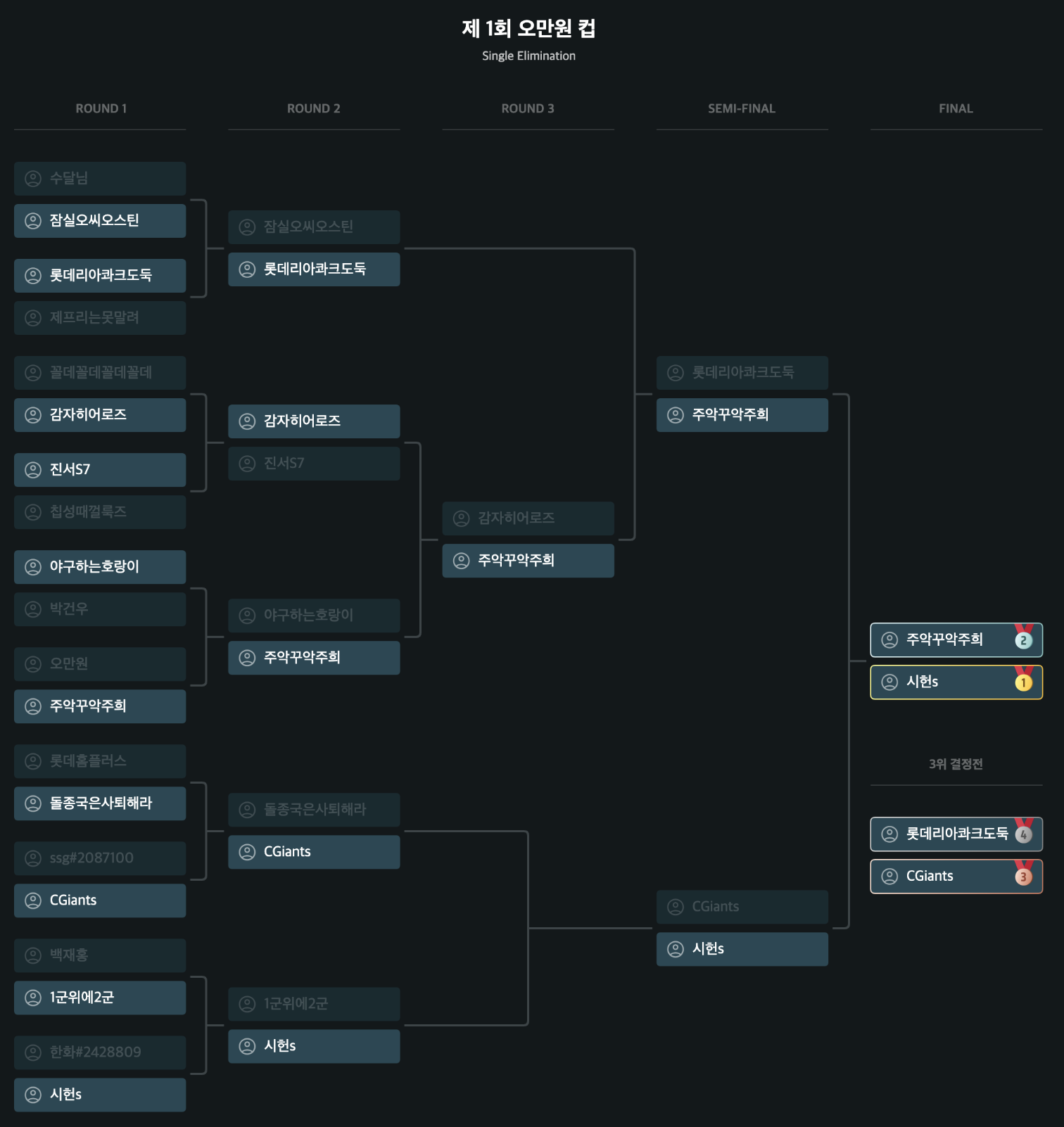 얼마전 공지하였던 오만원컵이 많은 유저분들의 관심을 통해서 잘 마무리 되었습니다.