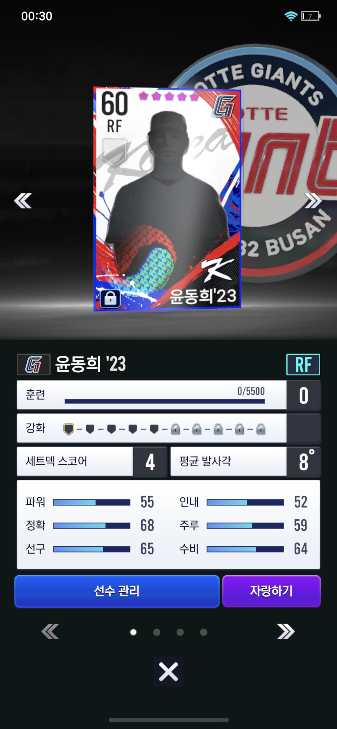 자팀 국대 윤동희가 떴는데 능력치가 너무 안좋아서 주전으로는 안쓰려고 합니다.