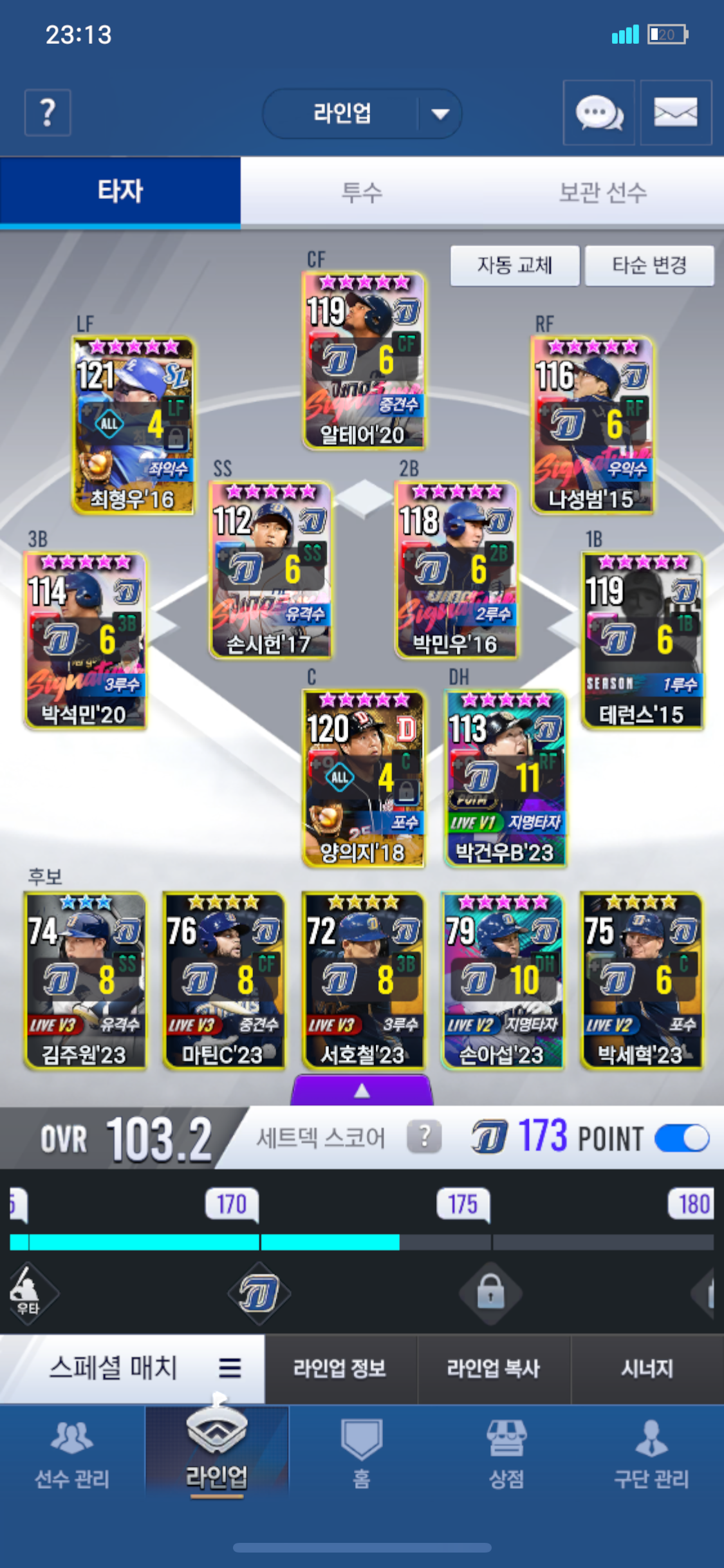 또한 하나 더 여쭤보고 싶은게 골글 양의지를 멋도 모르고 초반에 뽑아둔 상태여서 자팀 양의지로 바꿀지 아니면 그냥 계속 쓸지 고민인데 해당 부분도 훈수해주시면 감사하겠습니다!