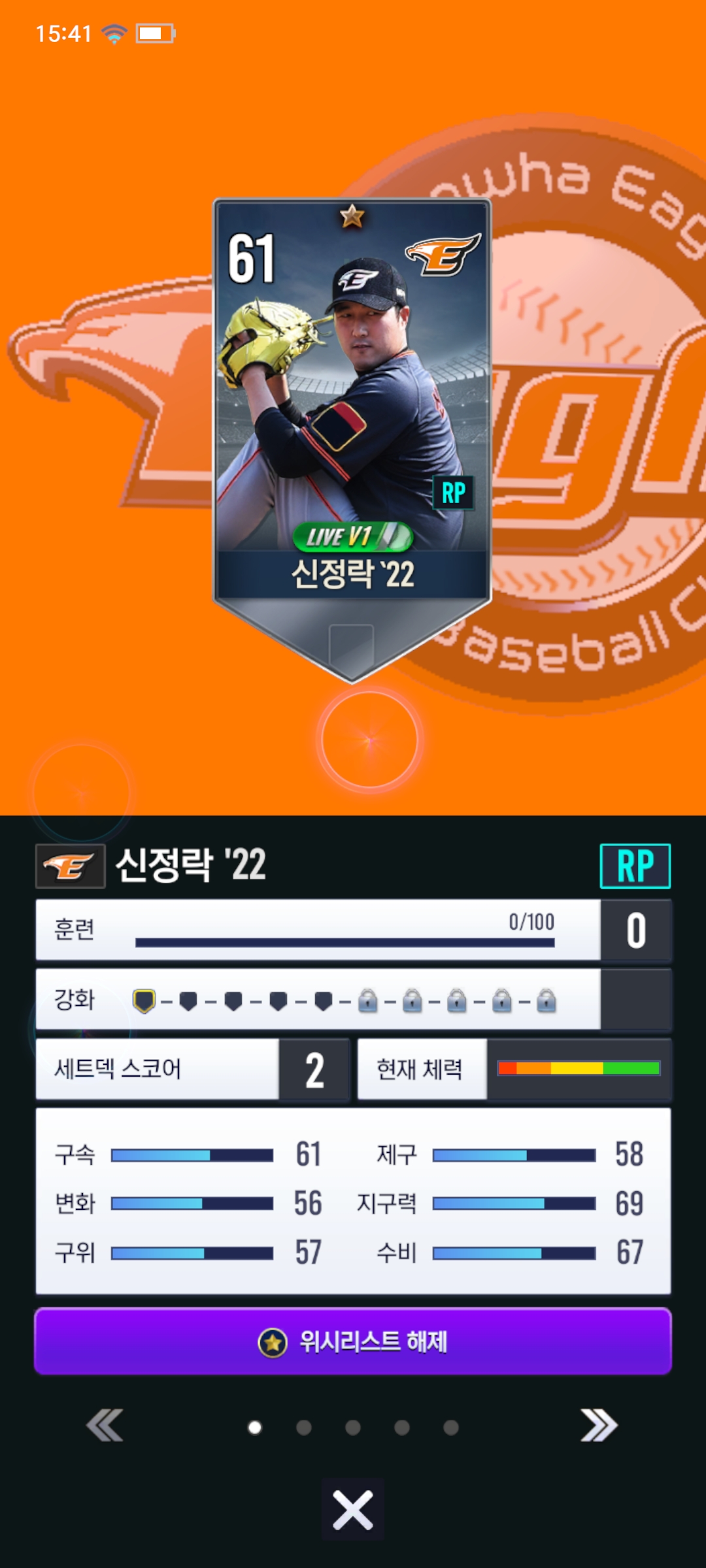 22라이브 한화 신정락 입니다.
