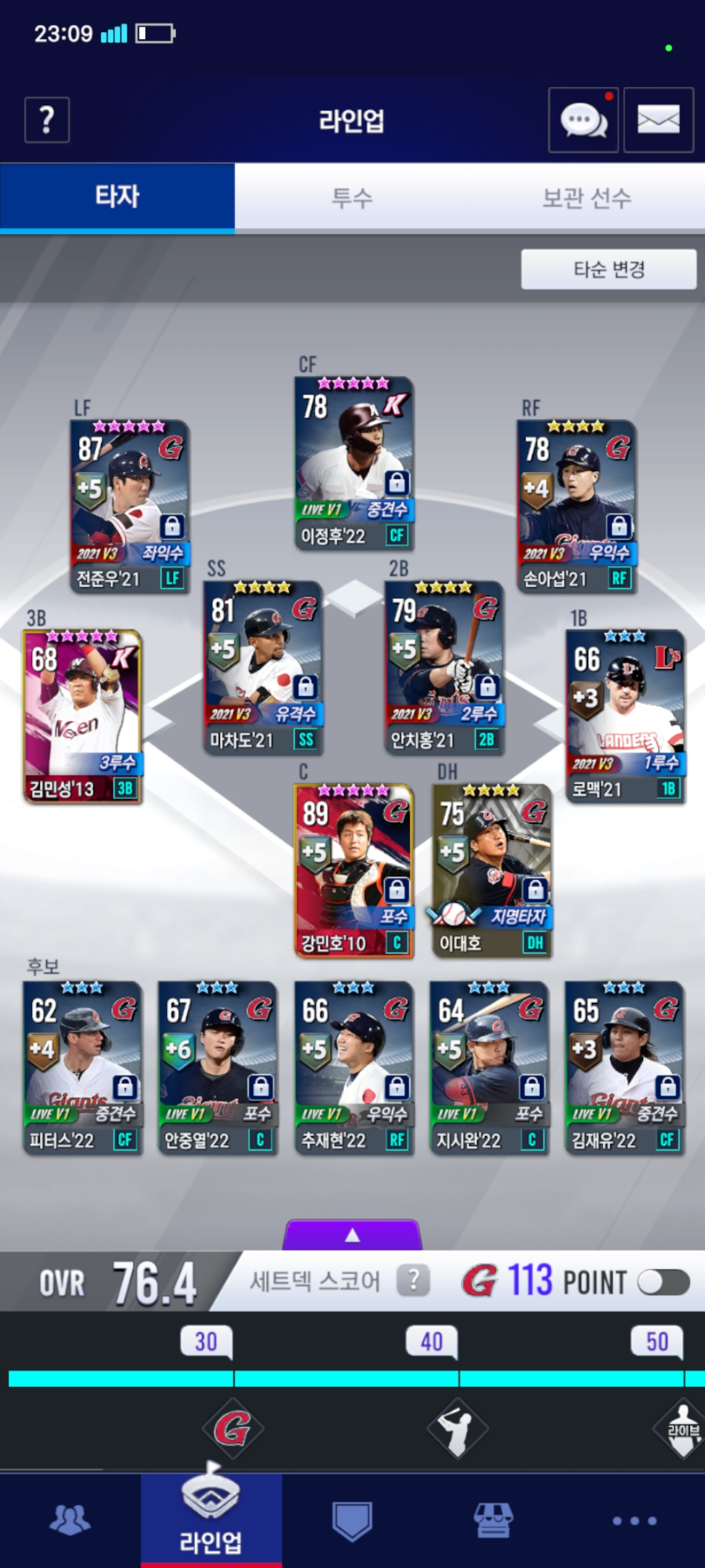 2루 안치홍은 22안치홍도 있는데 일단 21안치홍에 베팅머신 떠서 일단 21쓰고 있어요