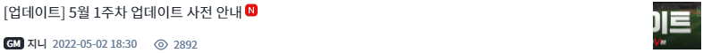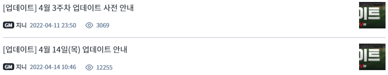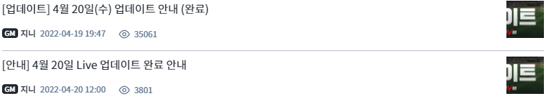 저번에 보시면 n주차 업데이트는 사전 안내하고 3일 뒤에 업데이트 되었습니다.