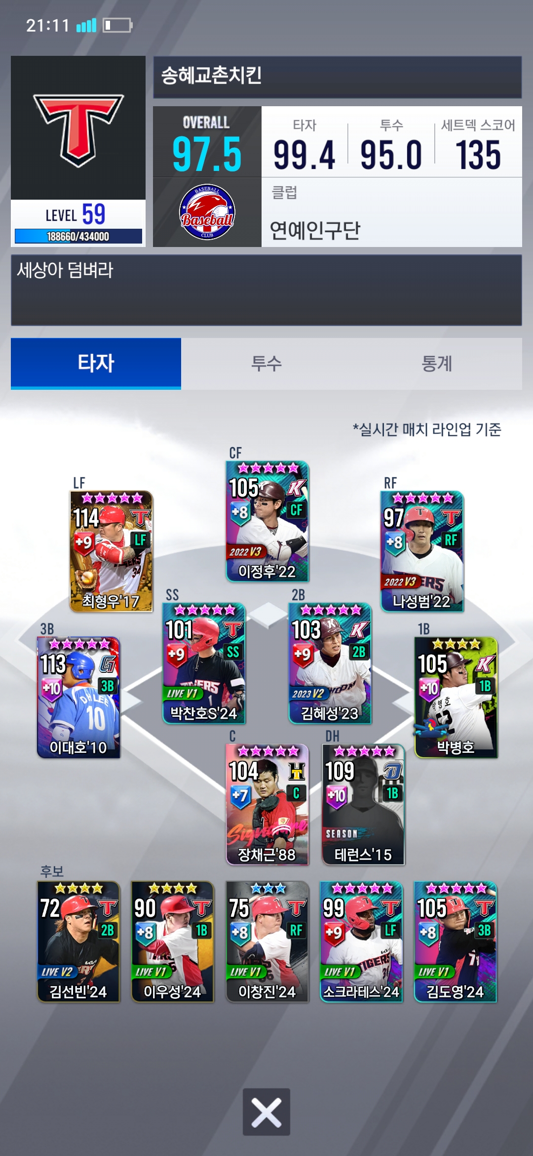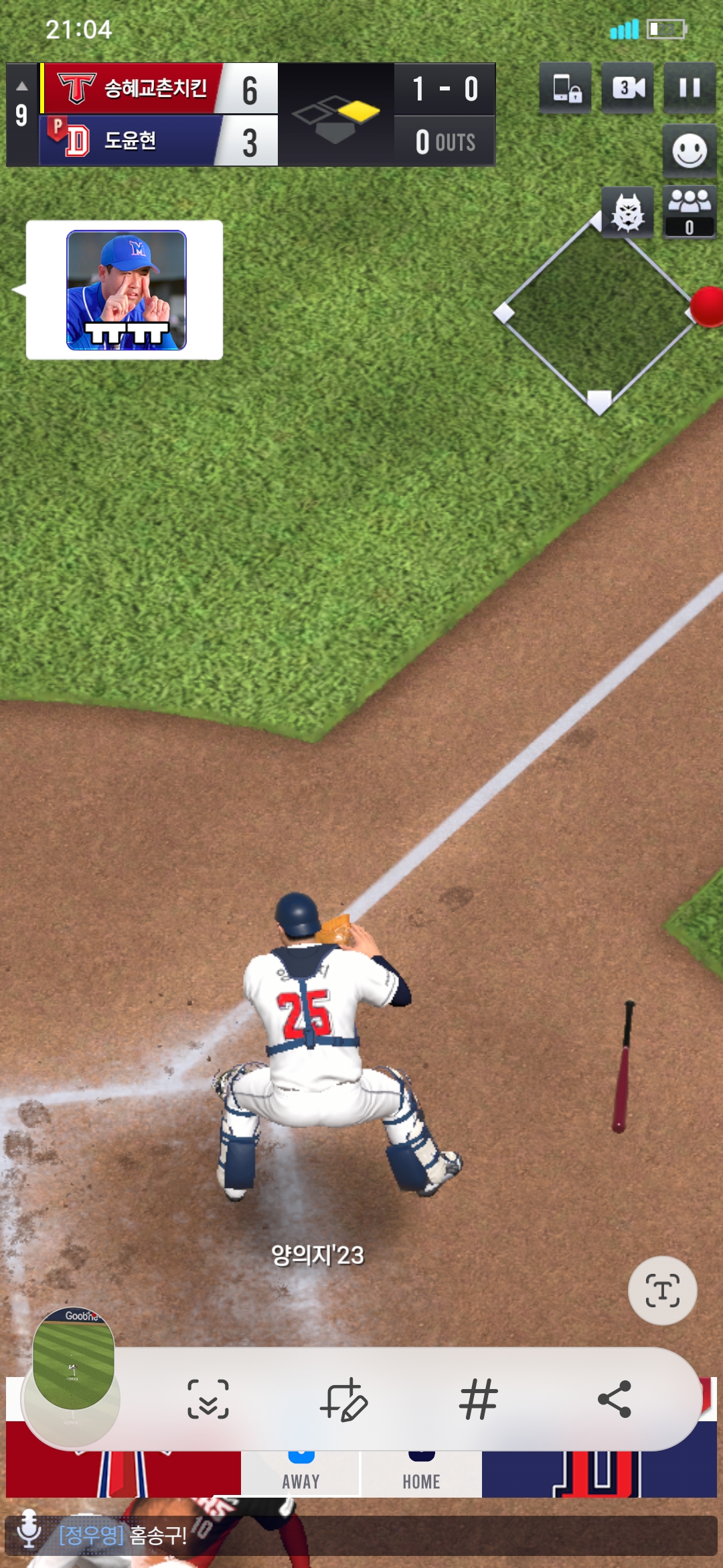 그러다가 볼 던져도 안타나고 억까 몇번하고 9초 점수차 벌어지니 안타칠때마다 이모티콘 엄청 날리더만요..