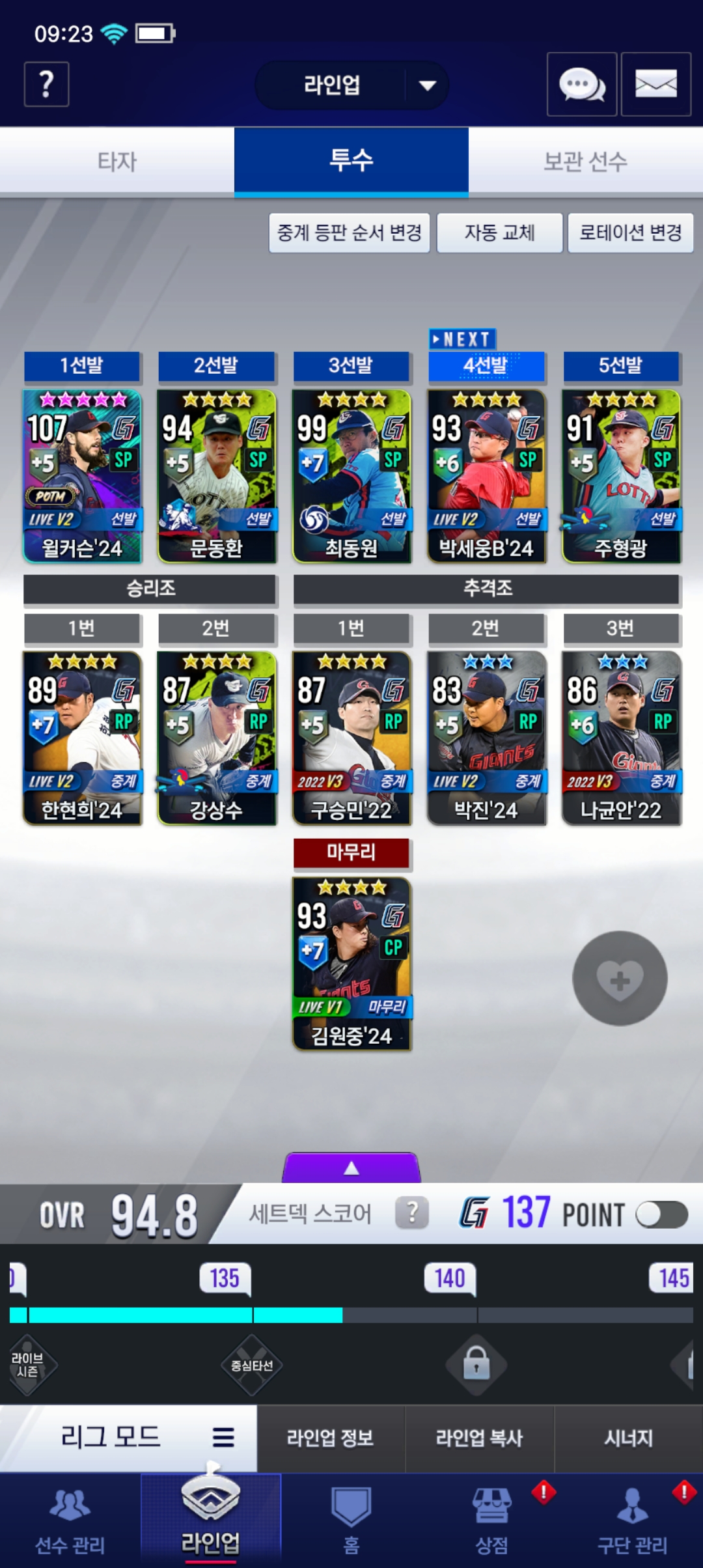 평소엔 1루 21정훈 7카 사용합니다.