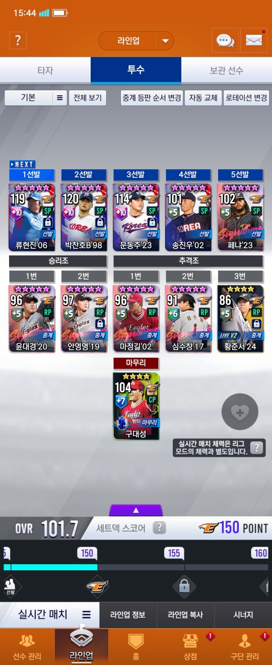 투수는 어쩔수없이 가사구대성이라 임팩하나 쓸수밖에 없었지만 ㅠㅠ