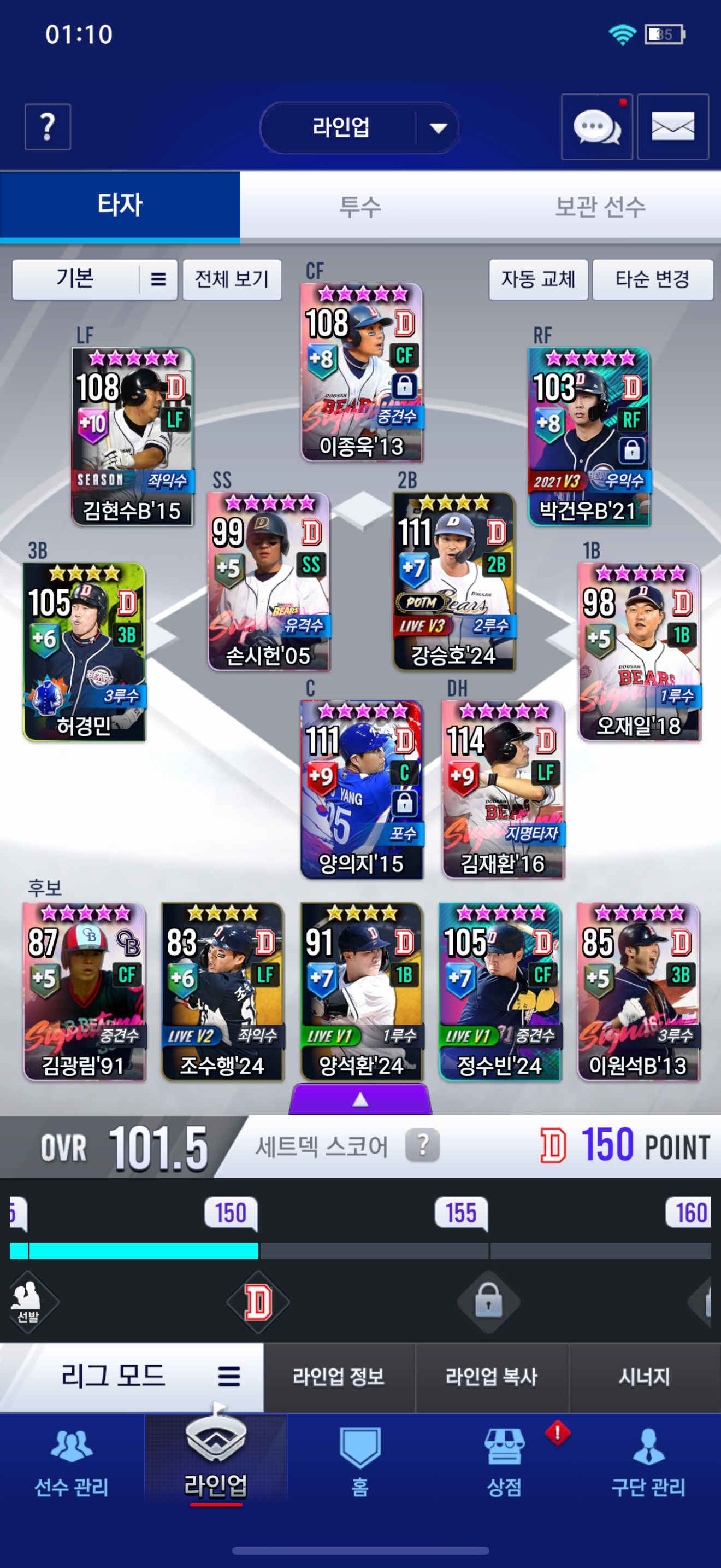 여기에 이승엽 써도 될까요? 그냥 아무렇게나 키우고 있는데 오재일보다 좋아보여서요