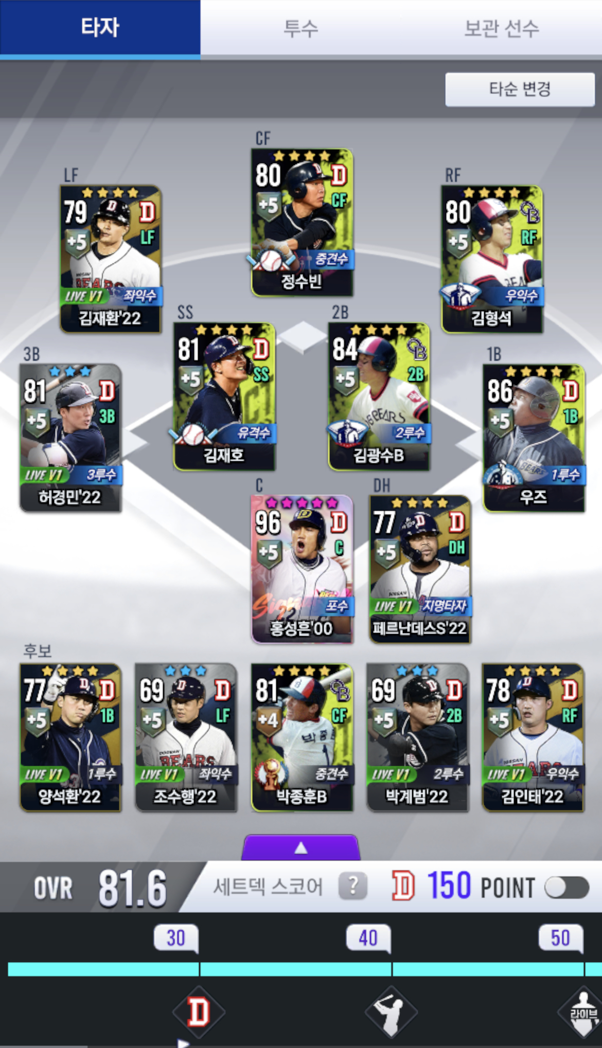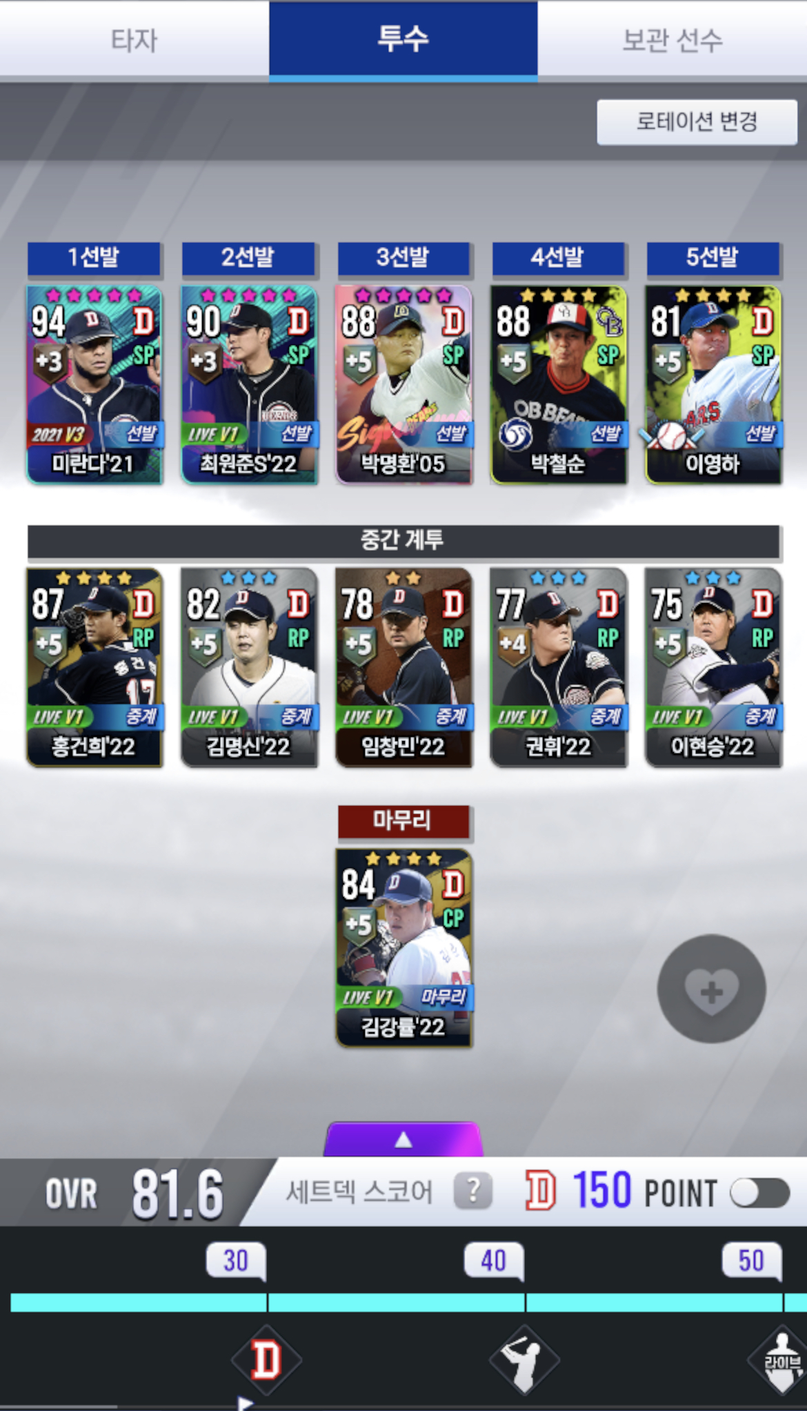 무현질로 현재 여기까지 올린 상태고 아직 다 강화랑 훈련 다 시킨게 아니라서..아마 다 올리면 82 오버롤까지는 무난할것 같음. 일일 미션땜에 천천히 올리는중