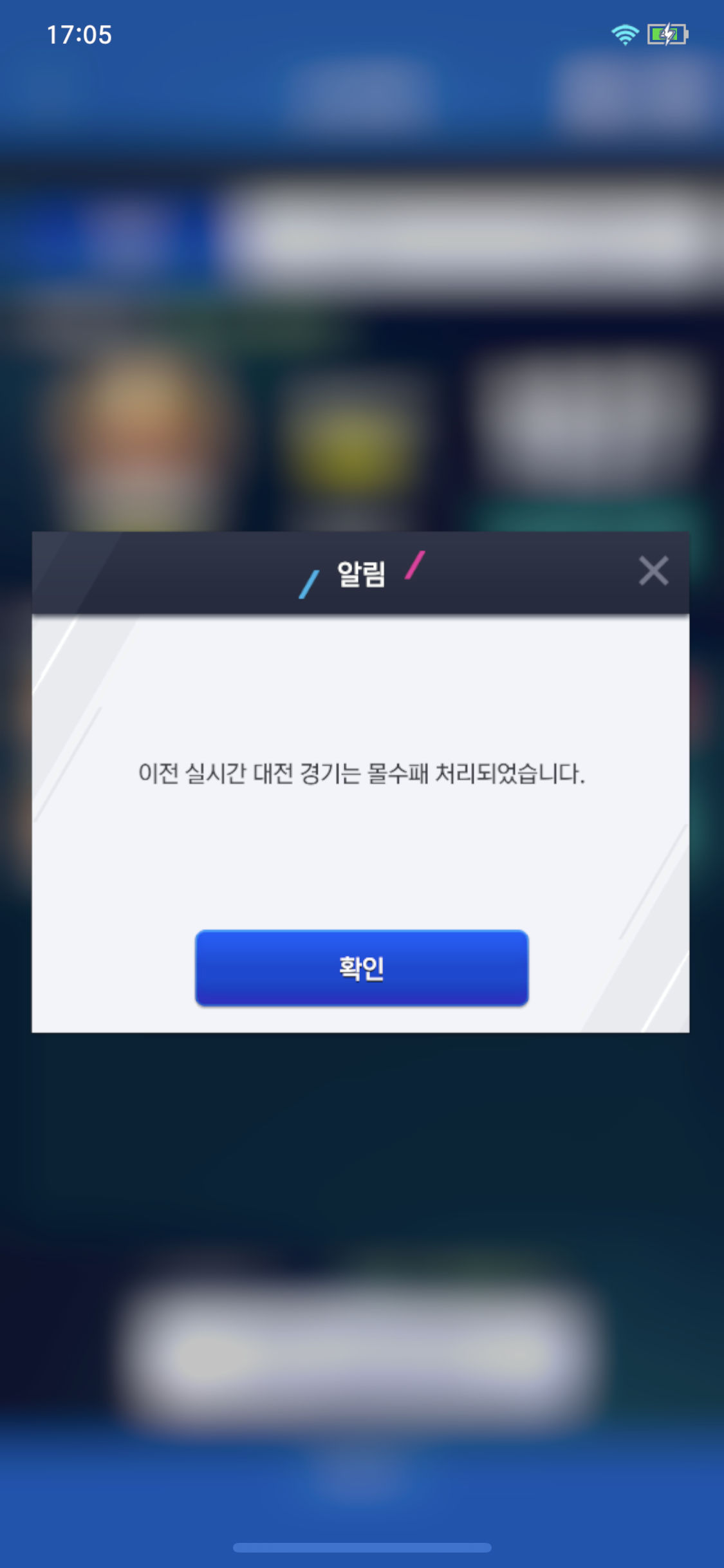 2:0이기던 중 네트워크 지연 그리고 이탈 뜨고 패배처리 됨.