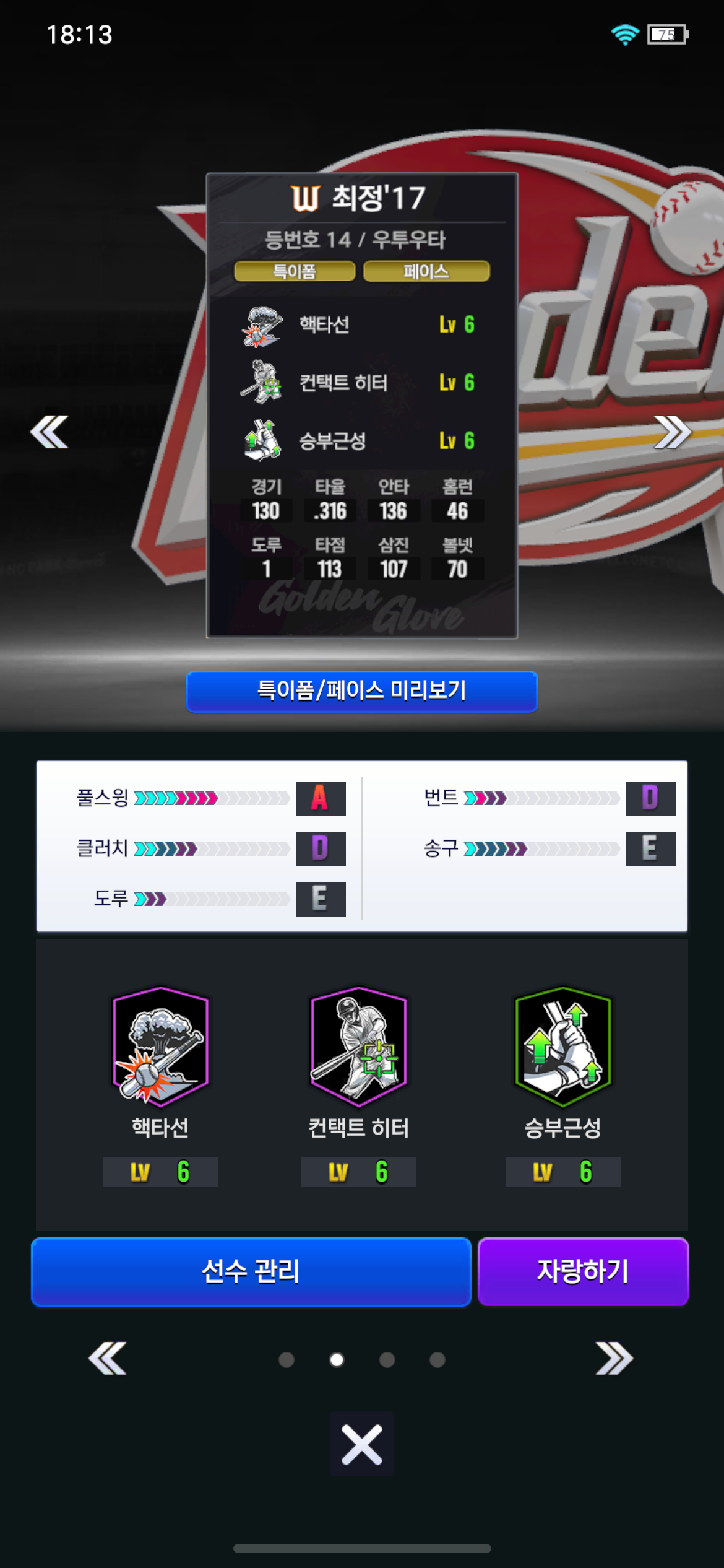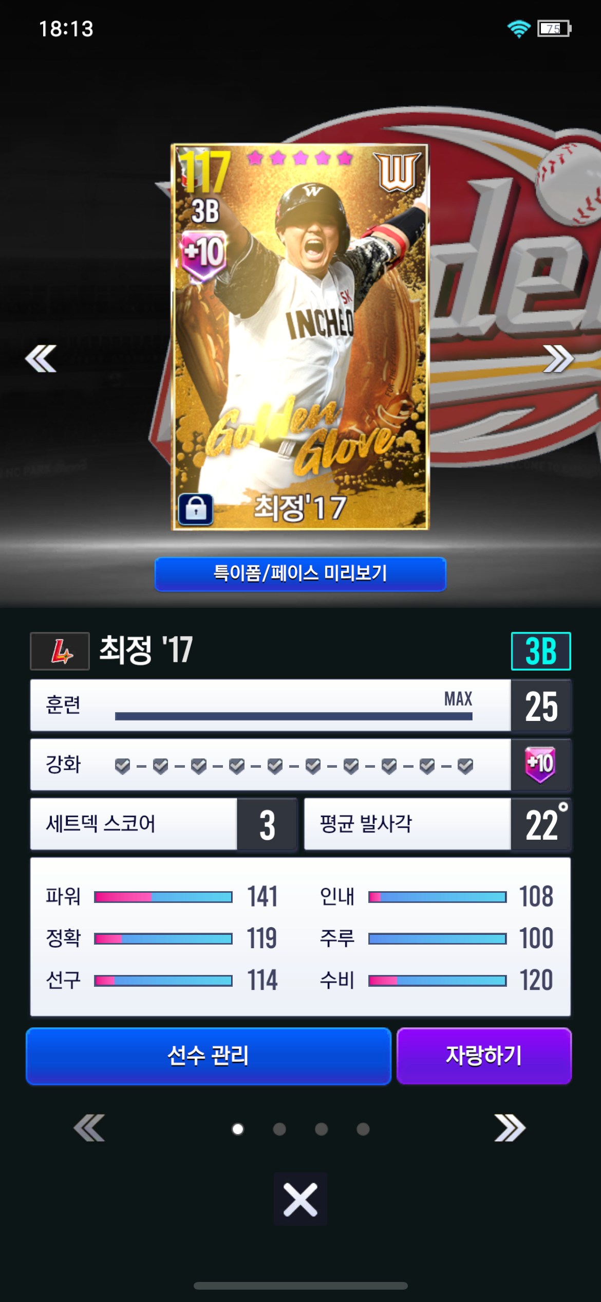 17년도 골글 최정인데 육성 잘 됐나요? 능력치는 뭐가 얼마 정도 되는 게 좋은가요?