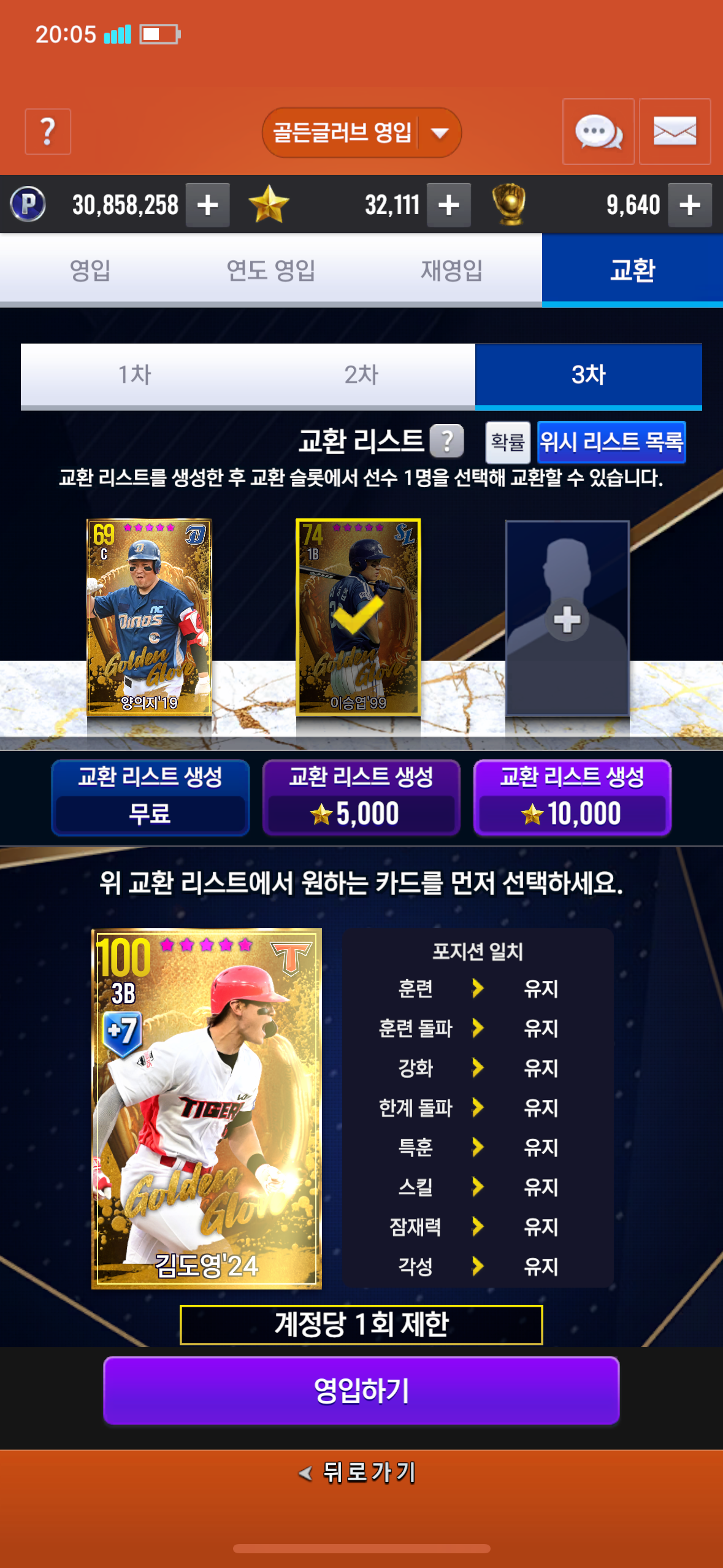 교환은 7강 김도영으로 할까요 남는 골글로 할까요?