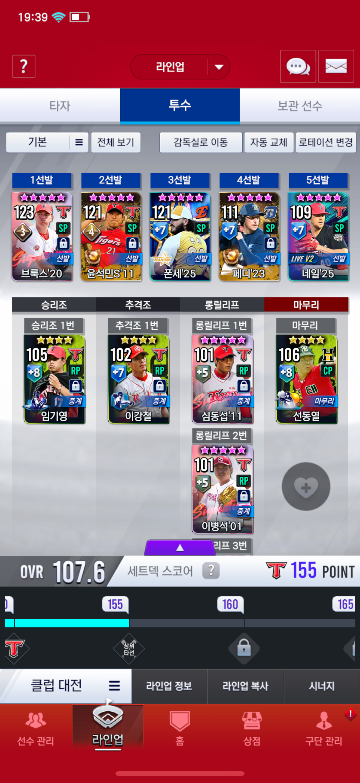 이렇게 떴는데 윤석민 김도영으로 교환하고 06류 선발로 키우는게 좋을까요? 아님 다른거 할거 있는지 알려주세요