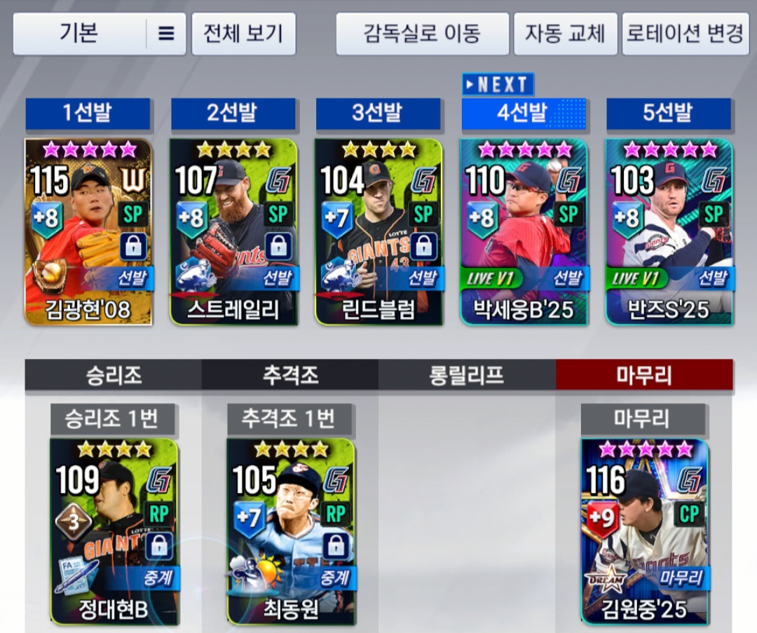 김도영 9강으로 교환할지, (교환 후 난세 전준우 사용?!)