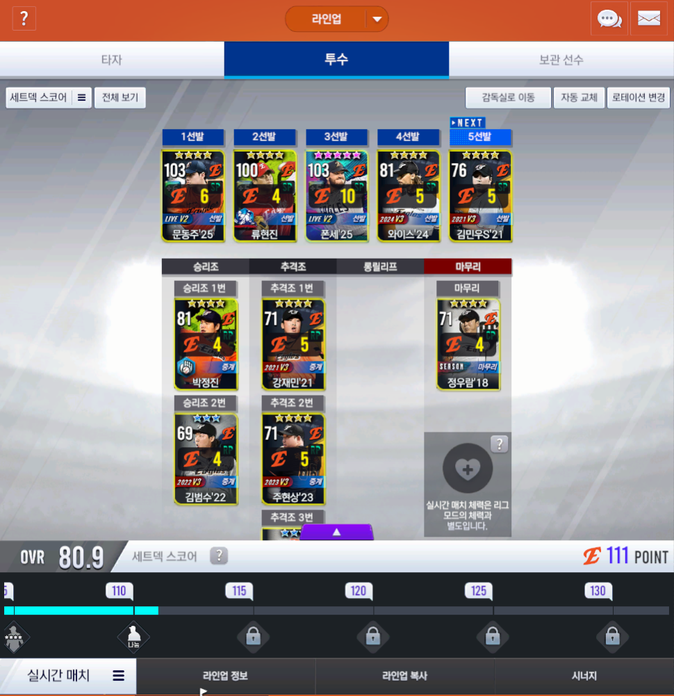 안녕하세요 컴프야v25 시작한지 24일된 뉴비입니다 현재 팀은 한화로 하고있고 팀사진 올려뒀으니 평가좀 부탁드리겠습니다 리그모드는 마스터2 까지 뚫어둔상태이고 골글영입 풀려서 재료는 다 넣었는데 골글 트로피가 없어서 영입을 못하고있는 상태입니다 ㅜㅜ 이외 매일매일 해야하는거나 선수육성을 어떻게 하는지, 재화수급은 어떻게 하는지 알려주시면 정말 감사하겠습니다 답변 부탁드립니다 감사합니다!!