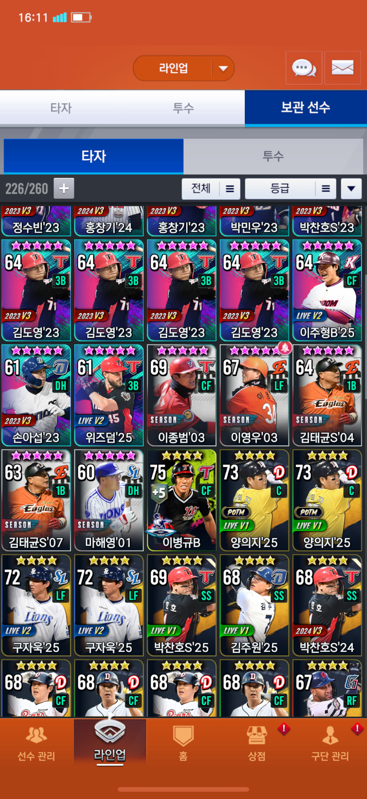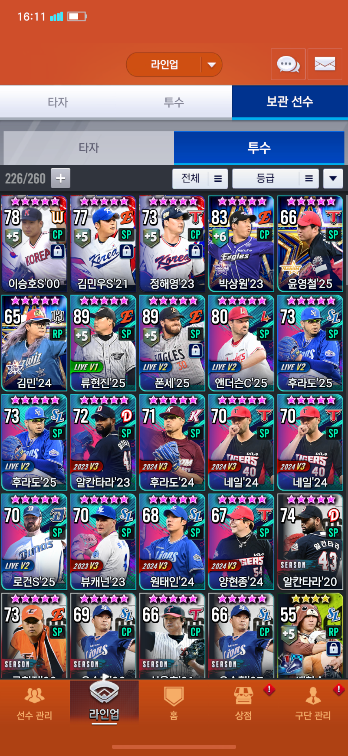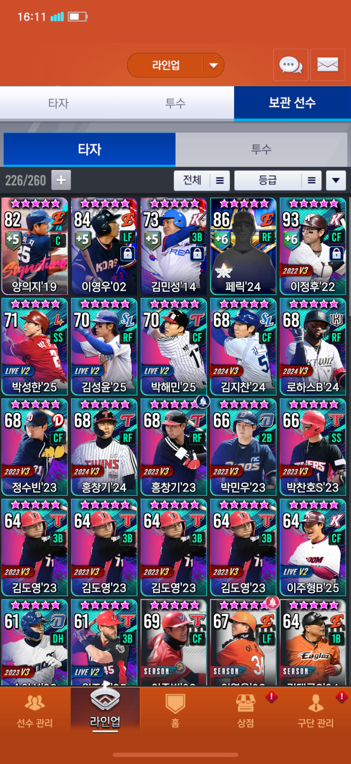 현재 팀이고 임팩 시그는 뭣 모르던 시절 나올 때마다 조합이랑 특훈으로 갈아버려서 거의 없고 fa도 일단 저질러 버렸습니다…