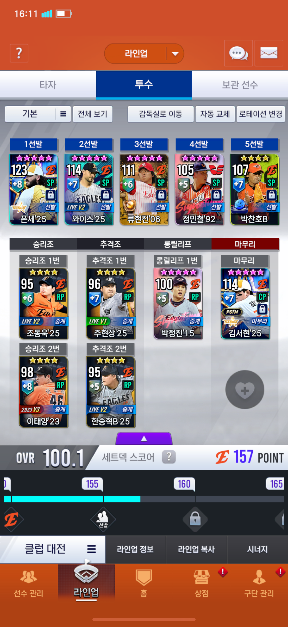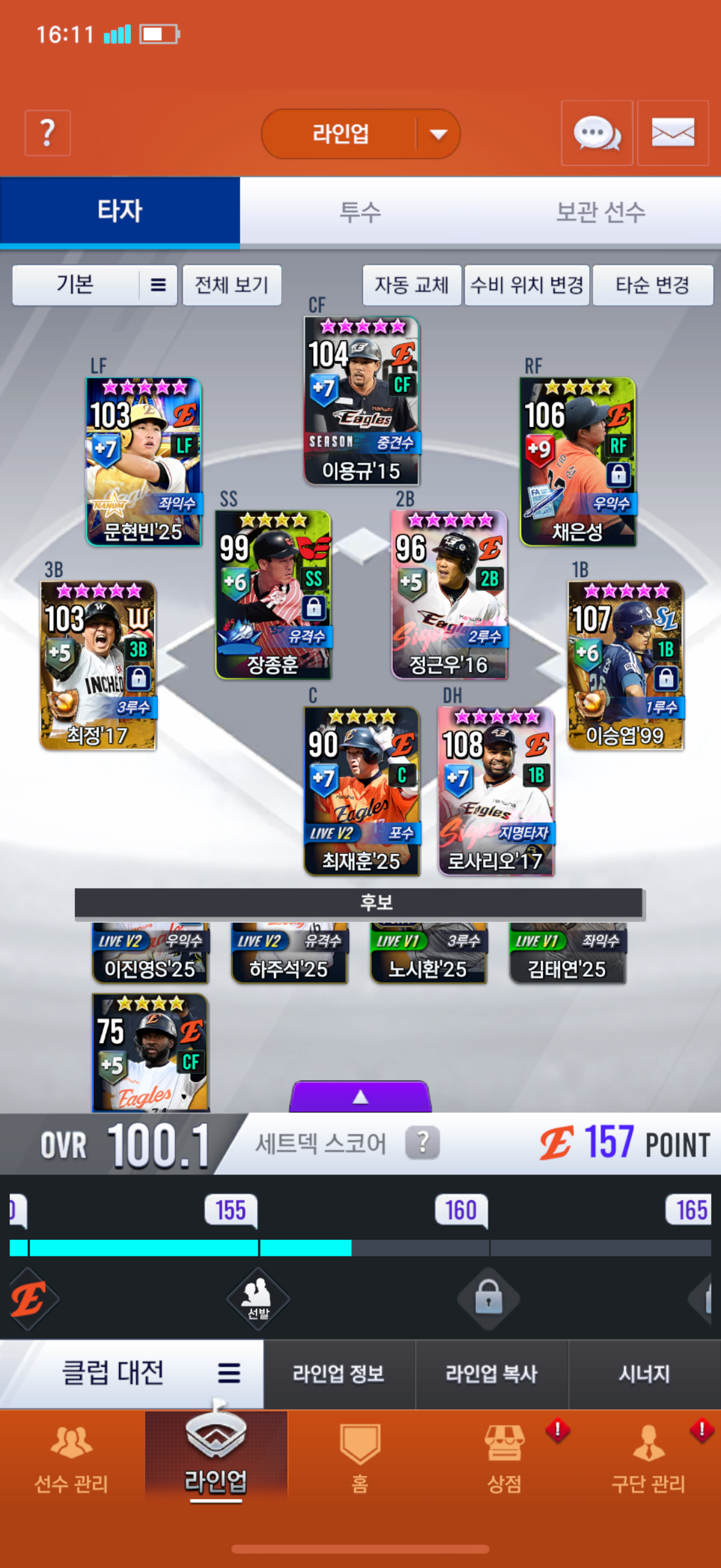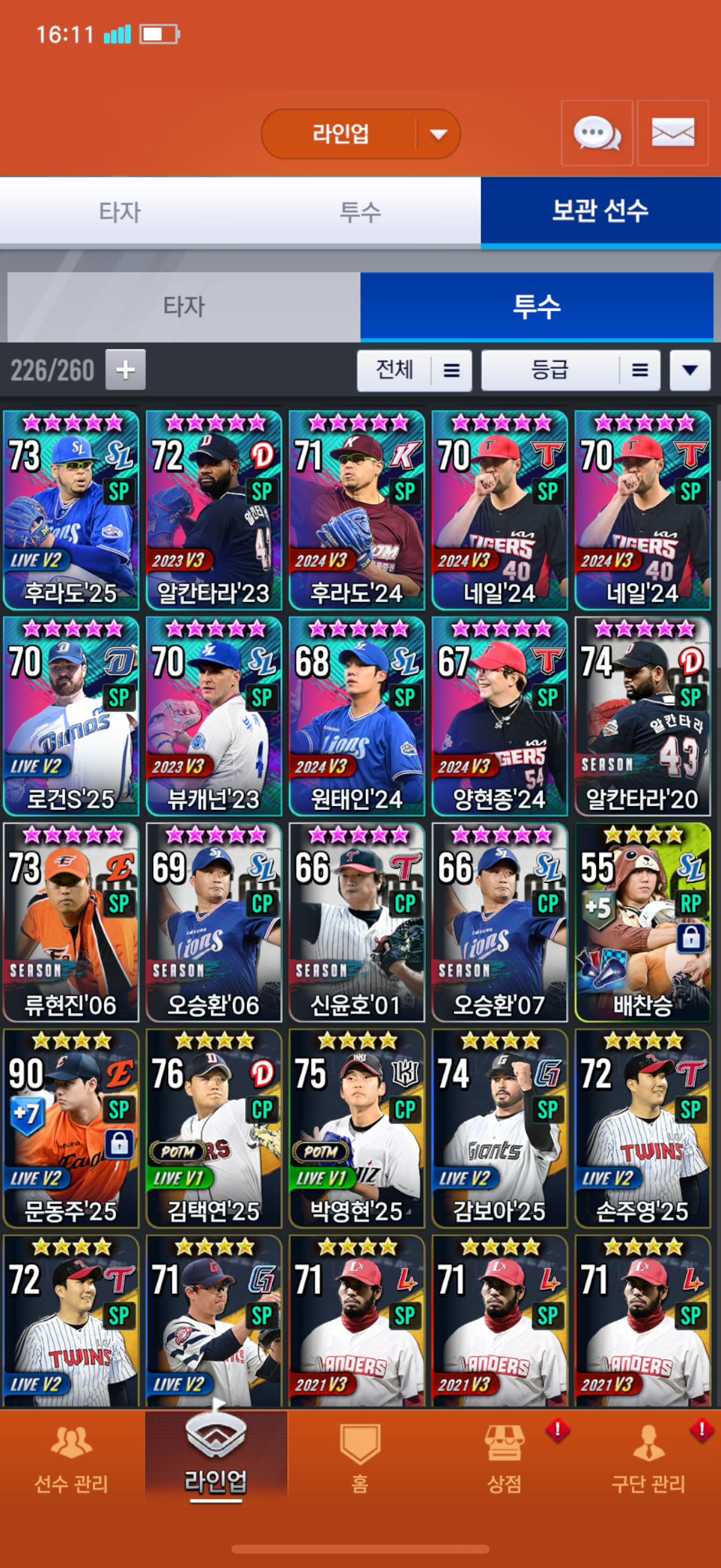 현재 팀이고 임팩 시그는 뭣 모르던 시절 나올 때마다 조합이랑 특훈으로 갈아버려서 거의 없고 fa도 일단 저질러 버렸습니다…