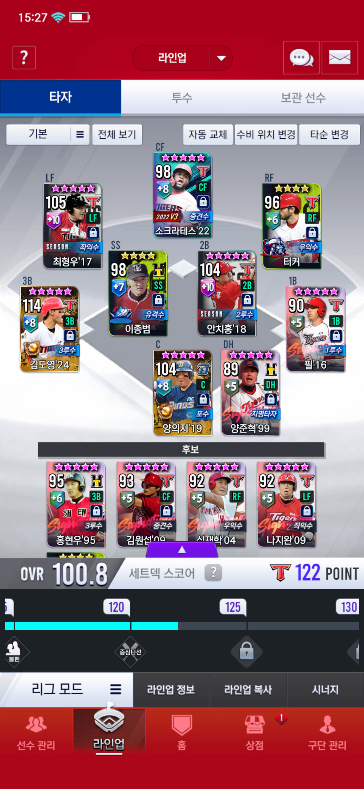원래 18시즌 10강 안치홍 지금 쓰고 있다가 나중에 여유로울 때 전에 뽑은 17시그 안치홍 키워서 쓰려고했는데