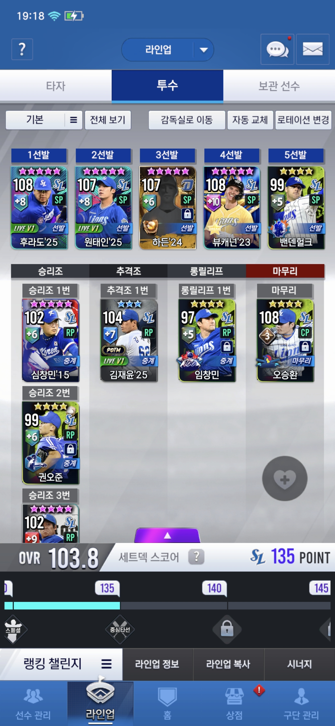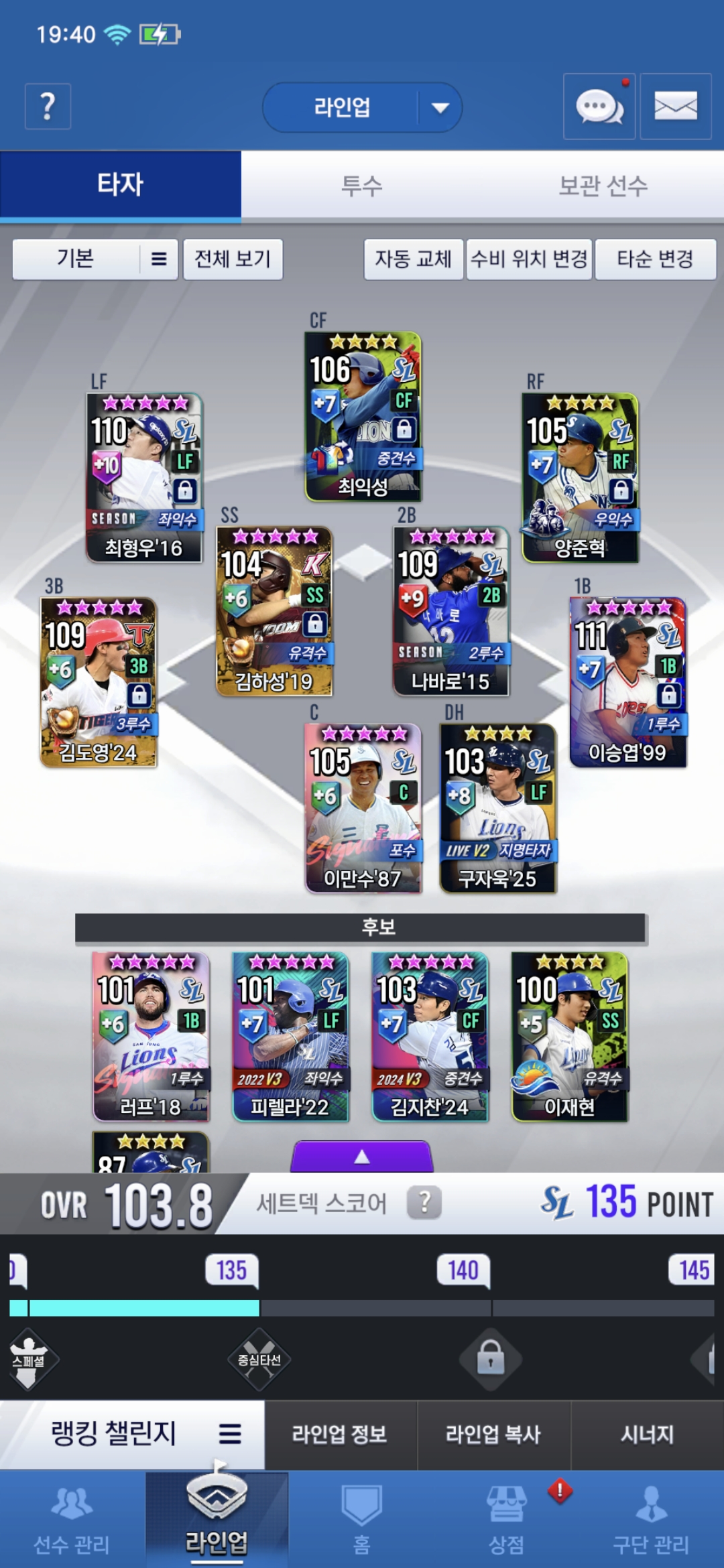 1. 지금 라이브 구자욱 쓰고있는데 그대로 쓸까요? 아니면 임팩트(캡틴) 구자욱이랑 17시그있는데 둘중에 하나로 바꿀까요?