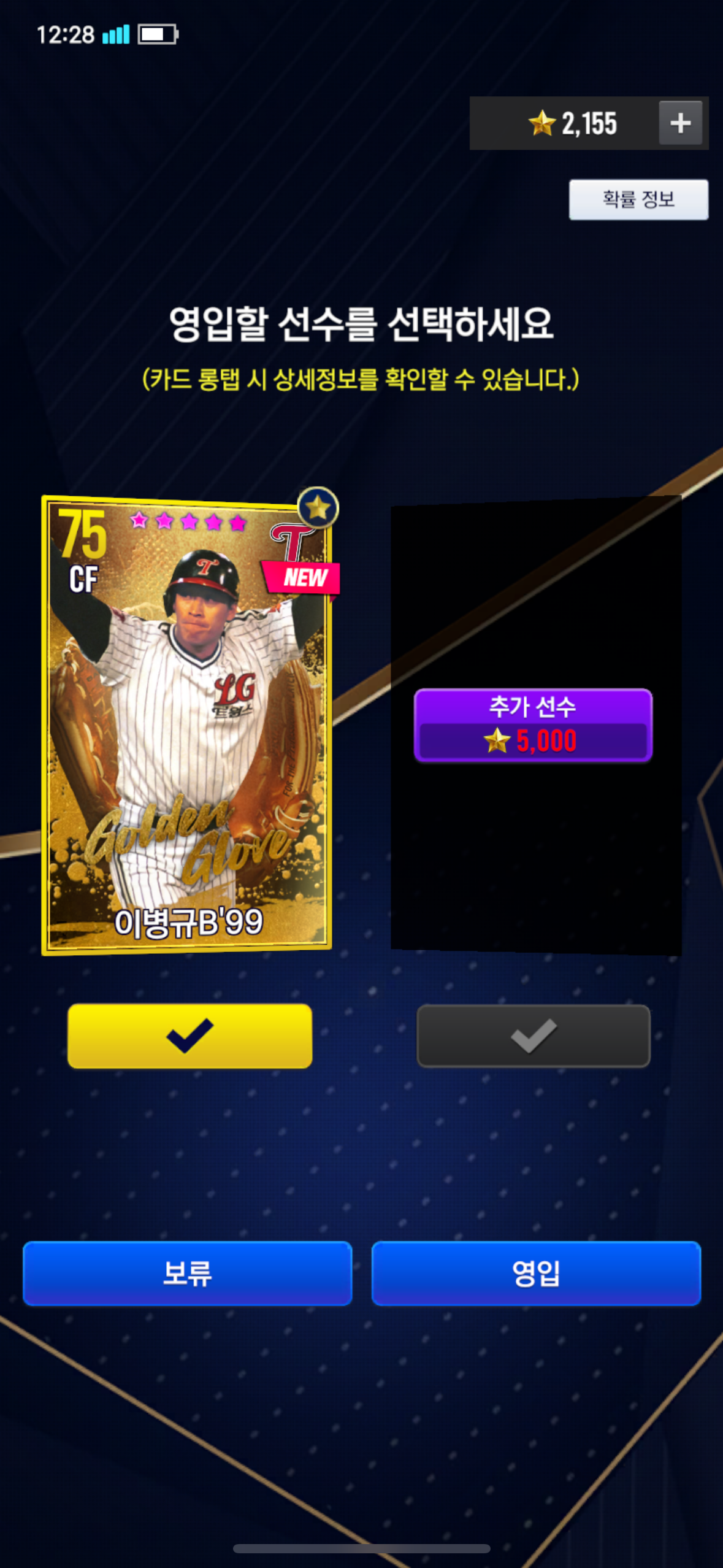 오늘 첫 골글 카드 영입을 했는데 99이병규 카드가 나왔습니다 종결 카드라는거는 알고는 있는데 지금 제 덱 구성에 국대 이병규 카드가 있어서 한번더 돌려서 다음 선수를 봐야할지 아니면 이대로 골글 이병규카드를 받아야 할지 조언 부탁드립니다
