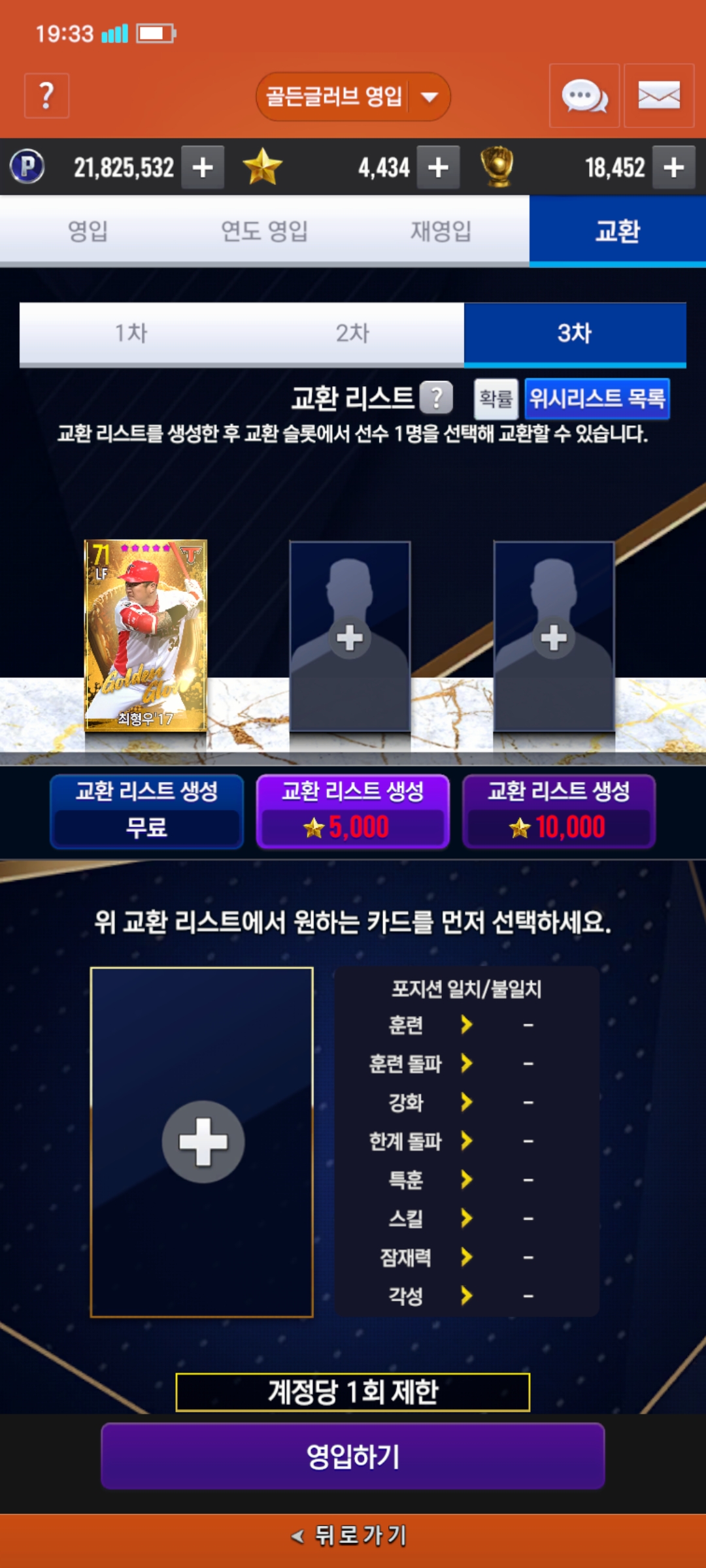 곧 있을 백노 송진우 픽업때문에 스타를 아껴야 해서 17최형우에 만족하고 교환할지 아니면 옆칸까지 다 열지 고민중입니다