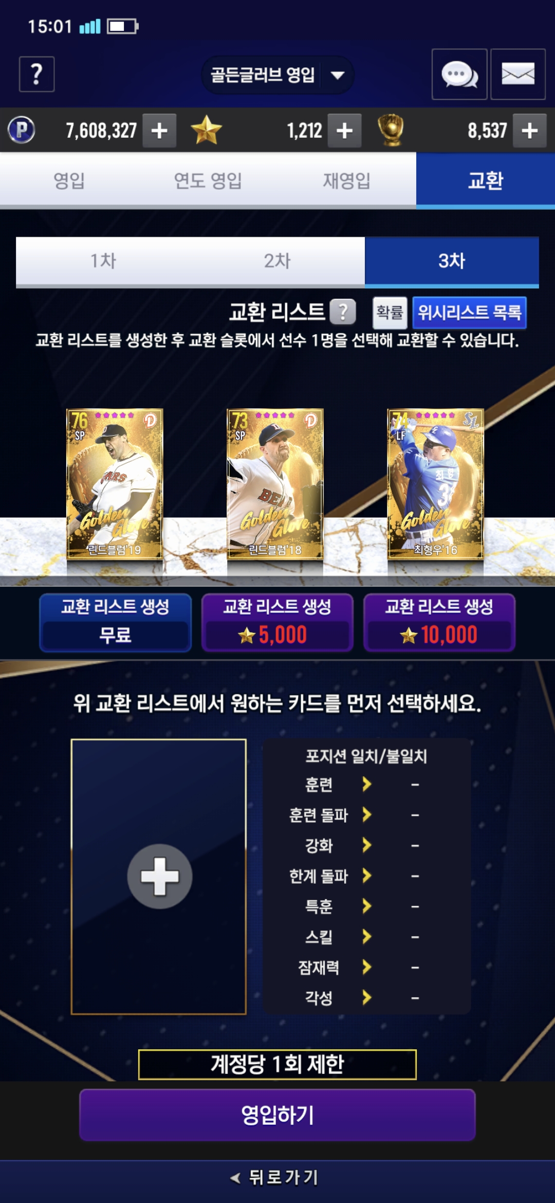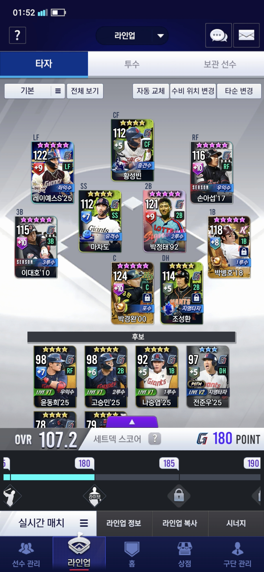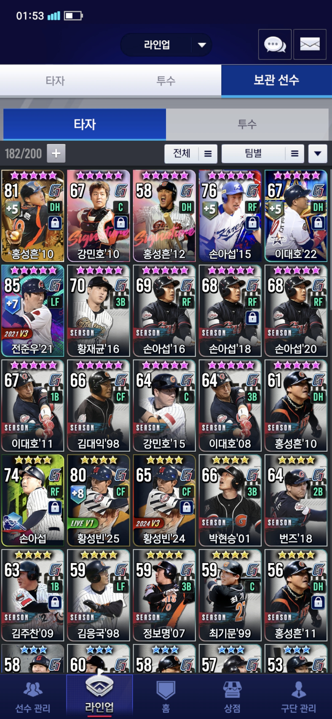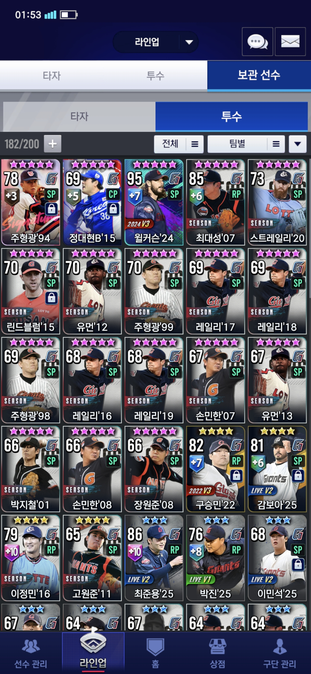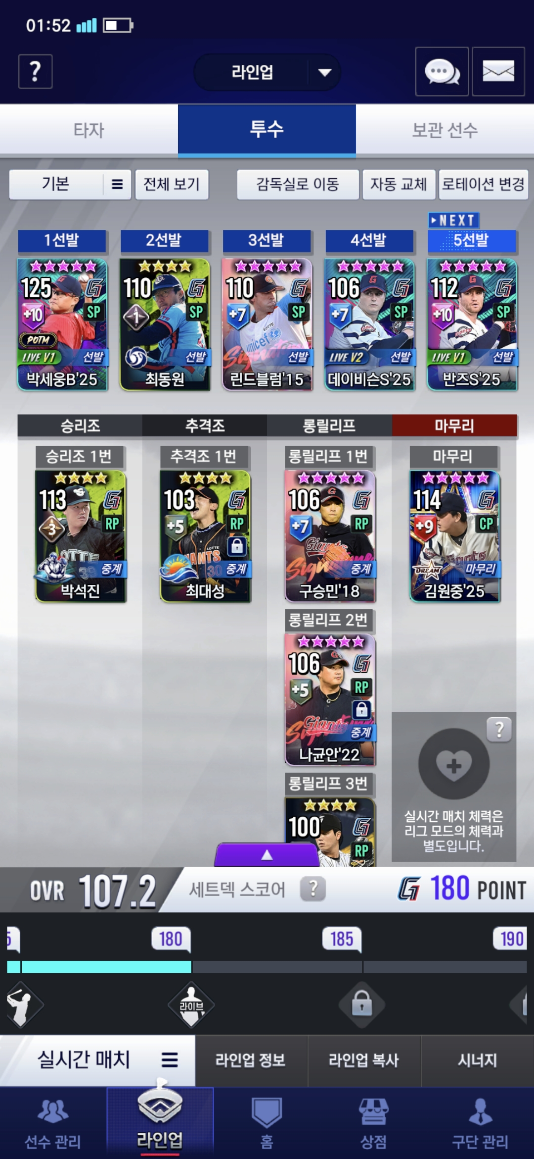 2안) 다른 골글로 린드블럼 바꾸고 시선팩은 나균안 각성 또는 18민병헌 또는 99호세 또는 04임경완