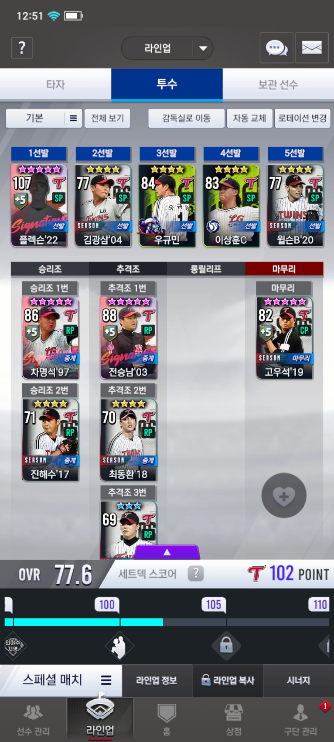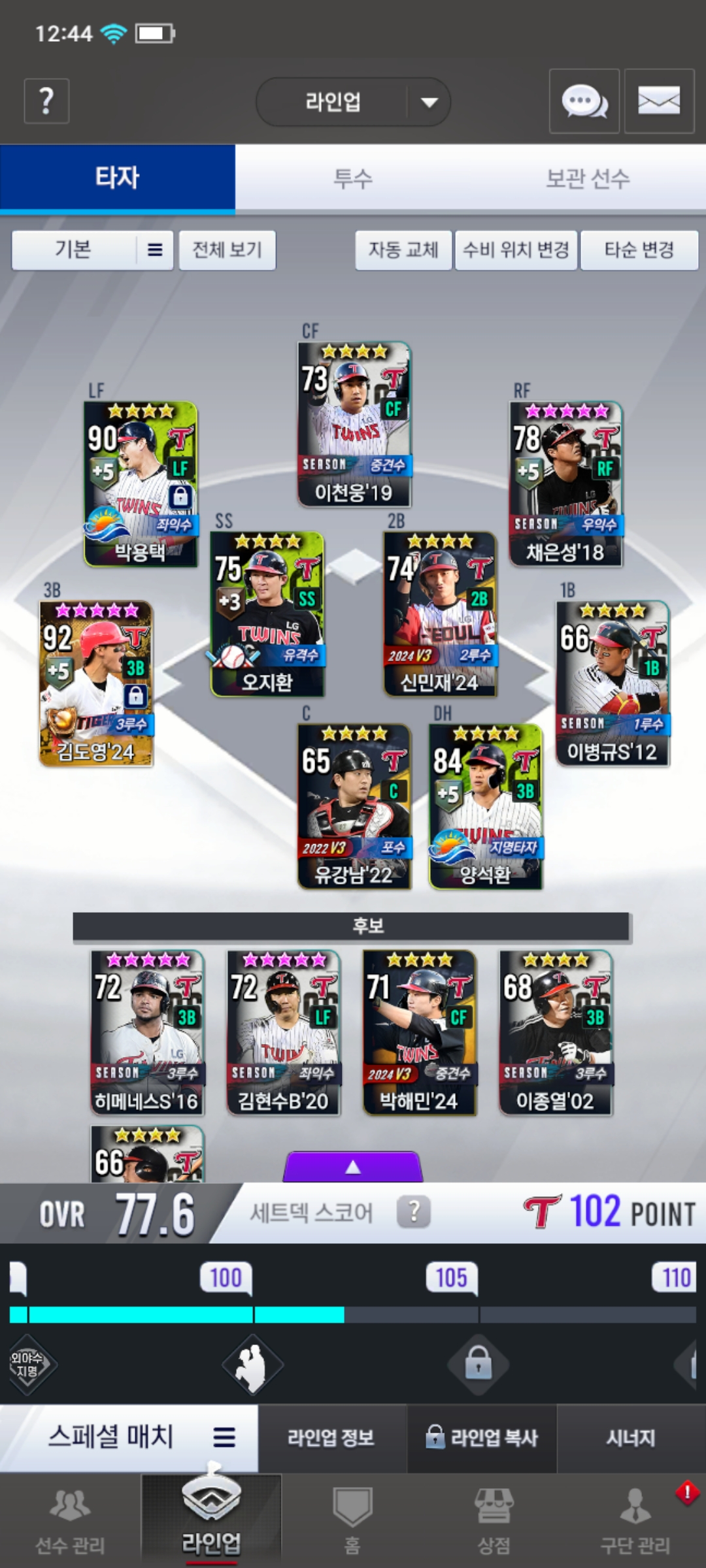 무과금으로 게임을 즐기다 정신차리고 리세를 하다보니 22시그 플럿코와 차명석, 전승남과 여사 박용택을 얻었습니다. 하지만 박용택과 추후에 얻을 18김현수의 포지션이 겹친다는걸 알게되어 고민입니다. 조언 부탁드립니다.