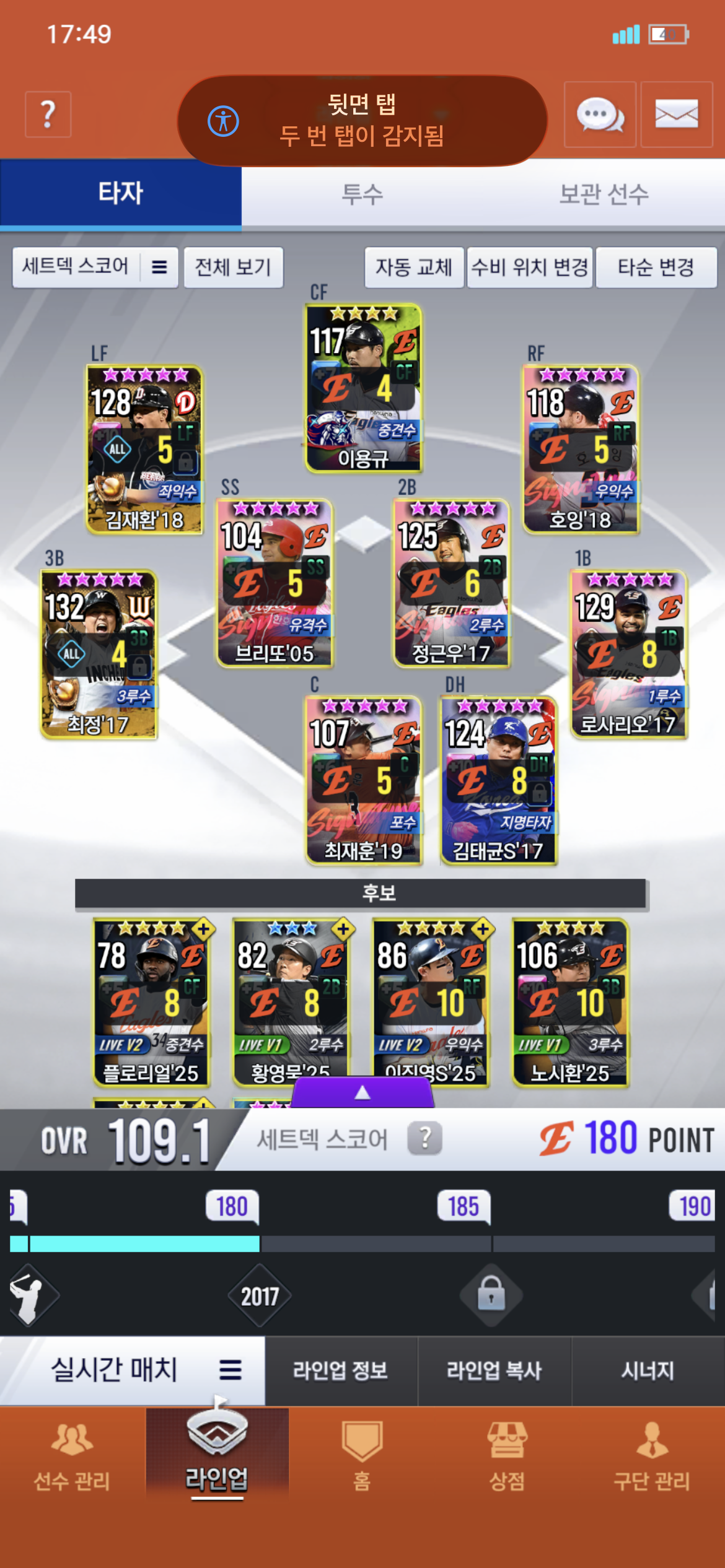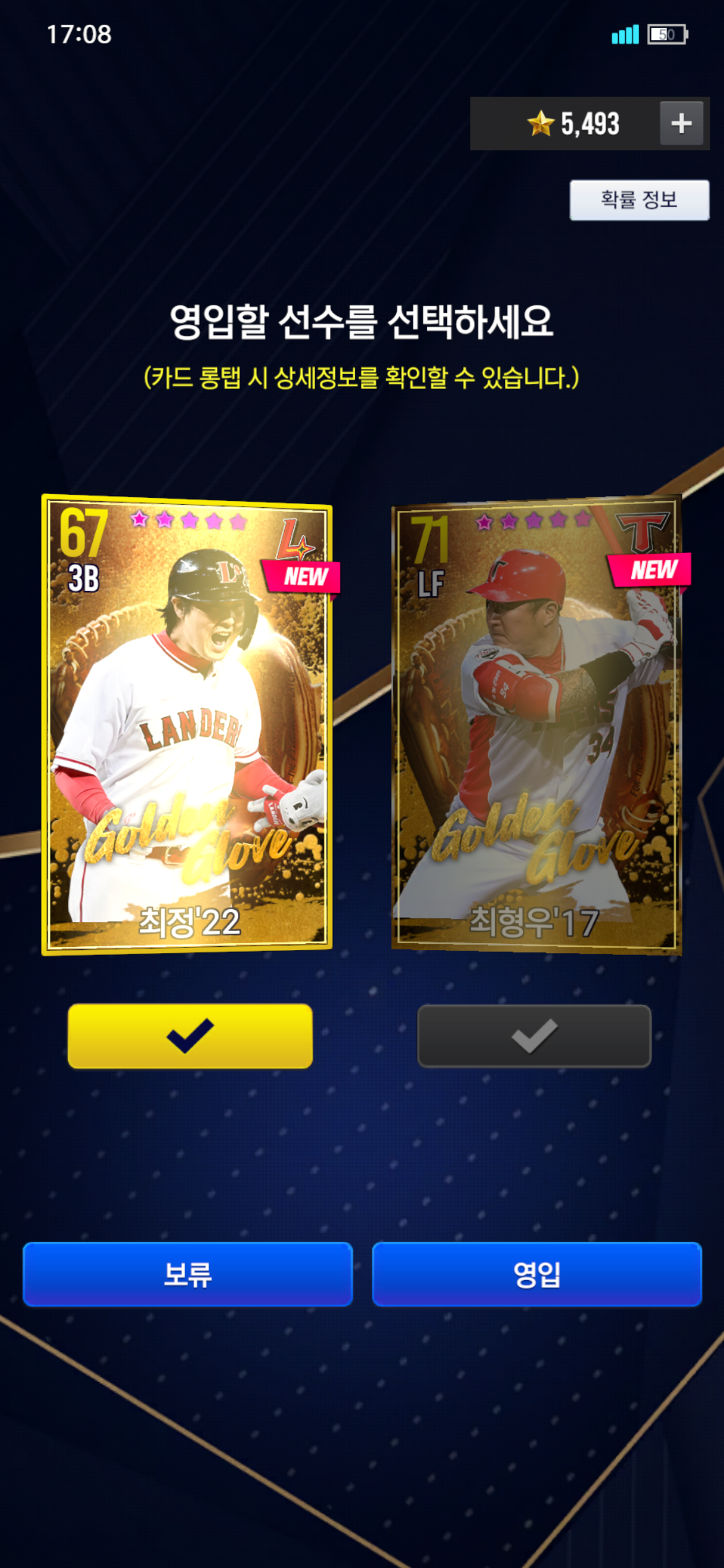 지금 덱은 이상태이고 골뽑을 했는데 22최정(최정+1각용)이랑 17형우가 떴네요.. 여러 톡방에도 여쭤봤었는데 의견이 꽤 갈려서 여기에 도움을 청할까 합니다. 물론 고점이라면 17형우를 뽑고 16형우나올때까지 존버하는게 맞겠지만 소과금유저라서 좀 고민이 됩니다. 누구를 뽑는게 맞을까요..?