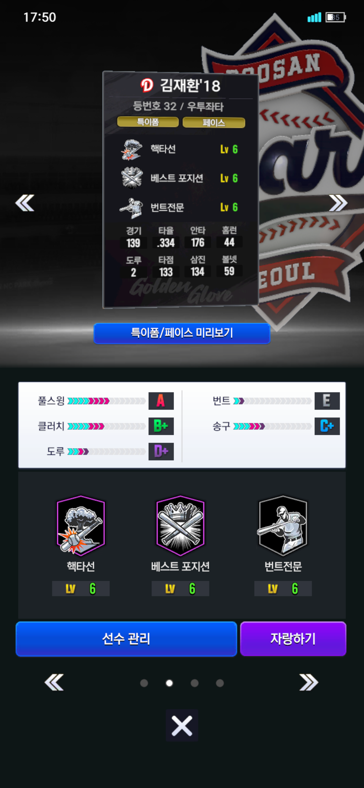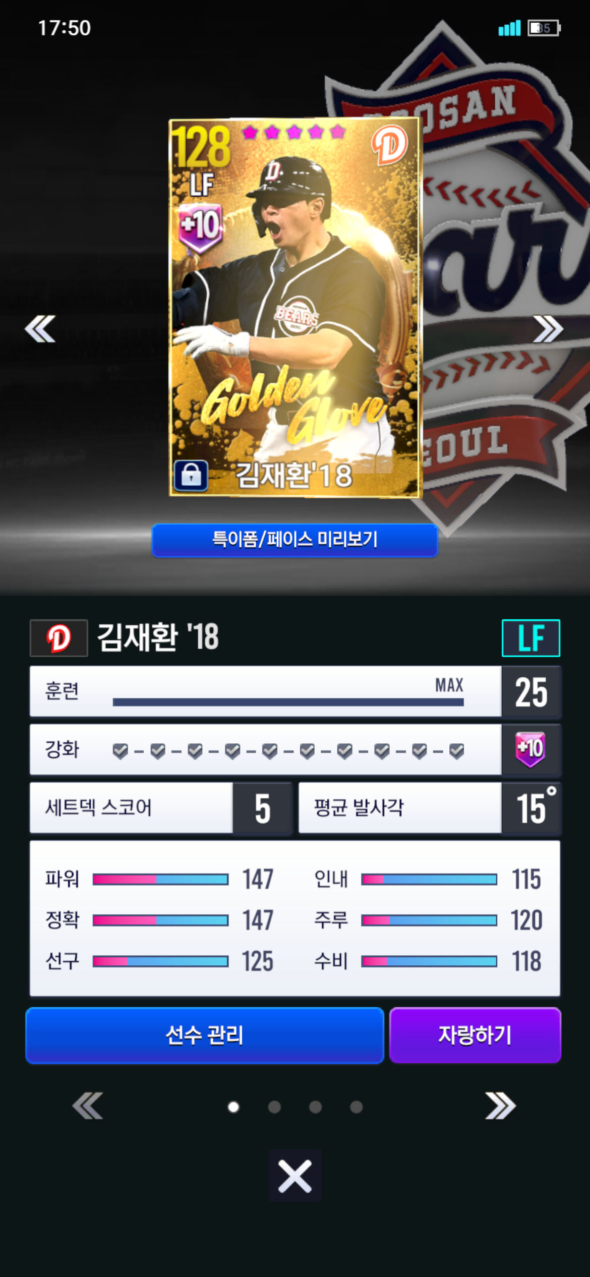 (아래 사진은 현재 김재환 육성상태입니다)