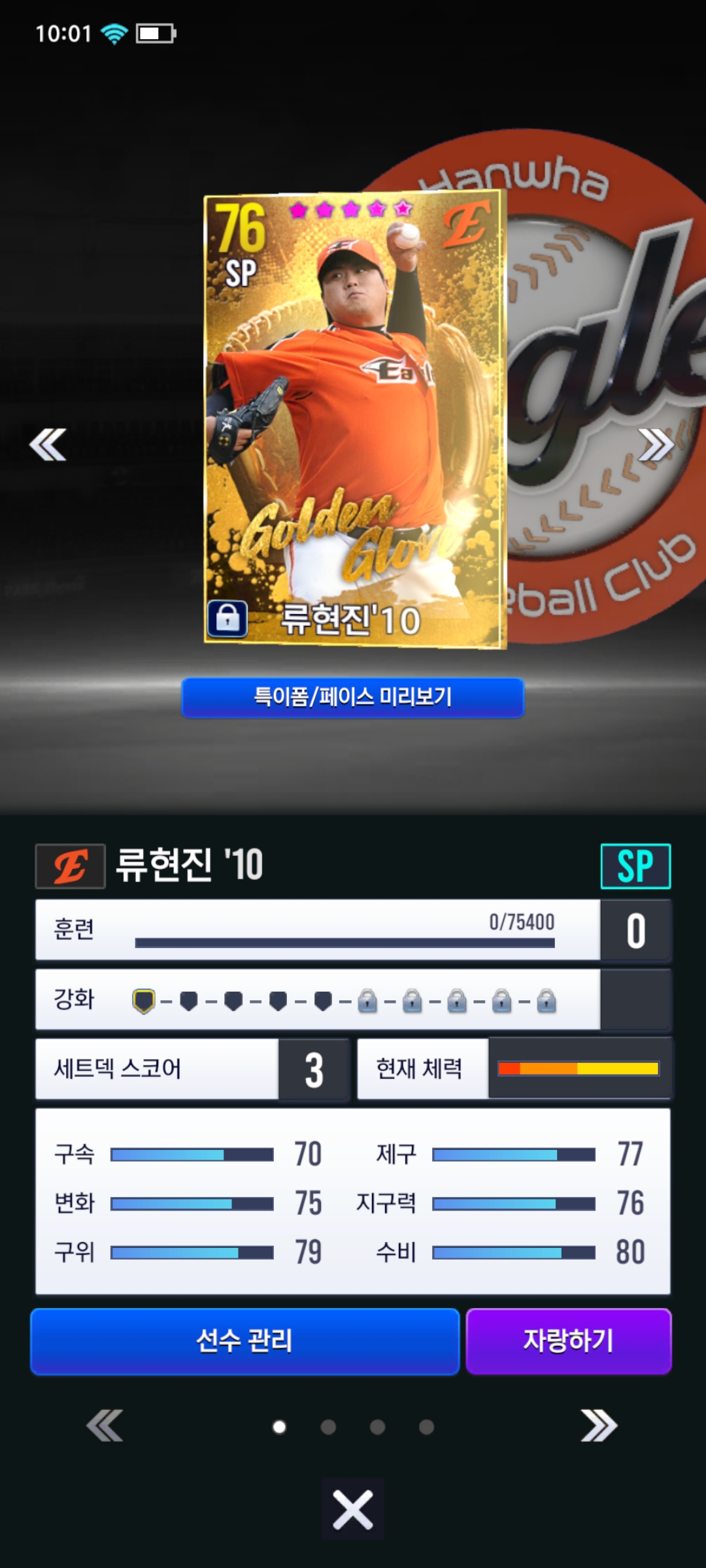 류현진10국대쓰고있었는데, 이런 팀 상황에서는 골글10류현진 뽑았으면 키우고 바꿔야하나요?