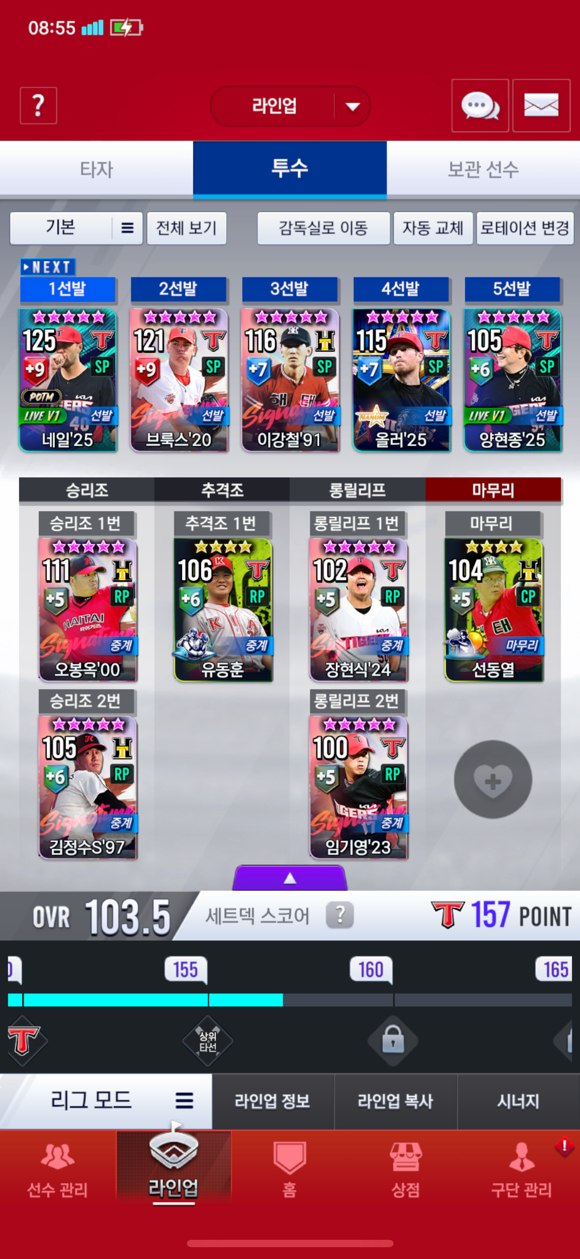이번에 시즌종료 스카우트에서 한개는 난세터커를 받았는데, 다른 한개에서 호타준족 홍현우를 받을지, 철완 선동열을 받을지 고민입니다.
