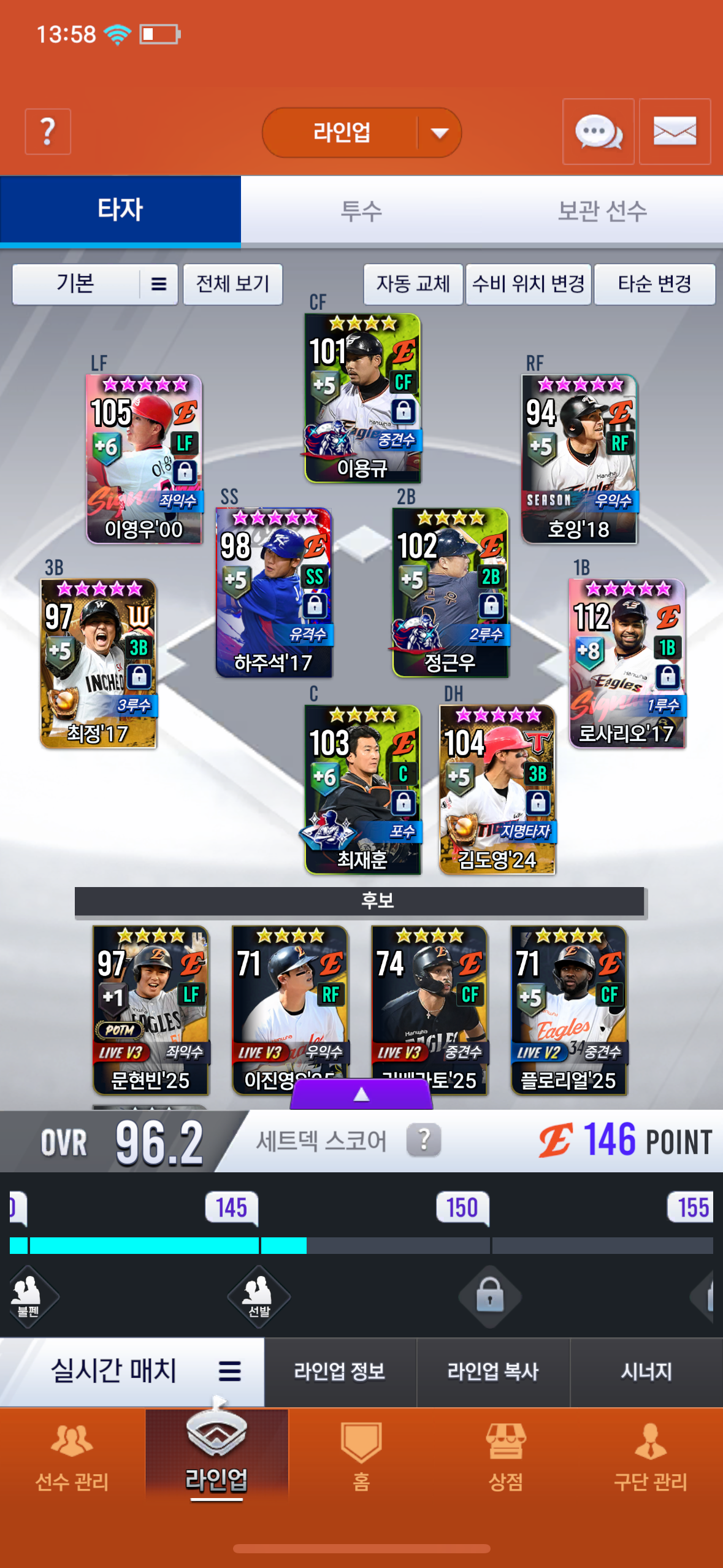 이번에 2차교환으로 17최정 얻었는데, 24김도영을 24구자욱으로 교환하고(1차교환 안함) 00영우를 지타로 쓰는 건 굳이 비추일까요?