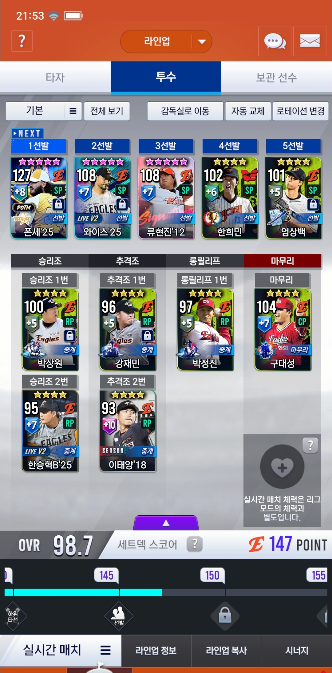지금 덱인데 정규시즌이벤트 스카우트에서 얻는