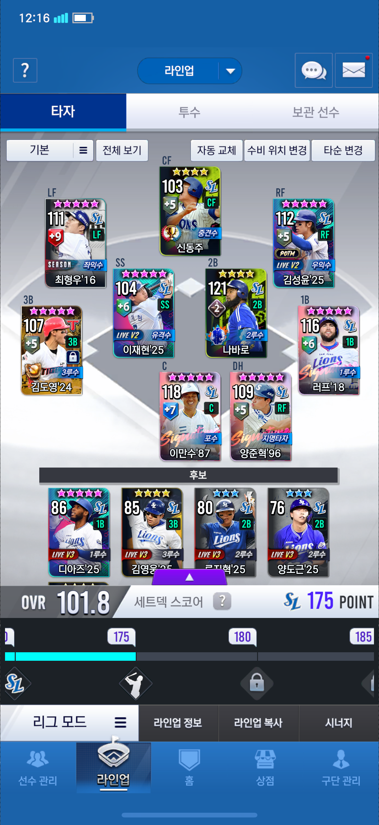 18 박병호는 나중에 96양준혁을 우익으로 올리고 지타로 사용할 예정이고, 과금은 하지 않을 예정입니다.