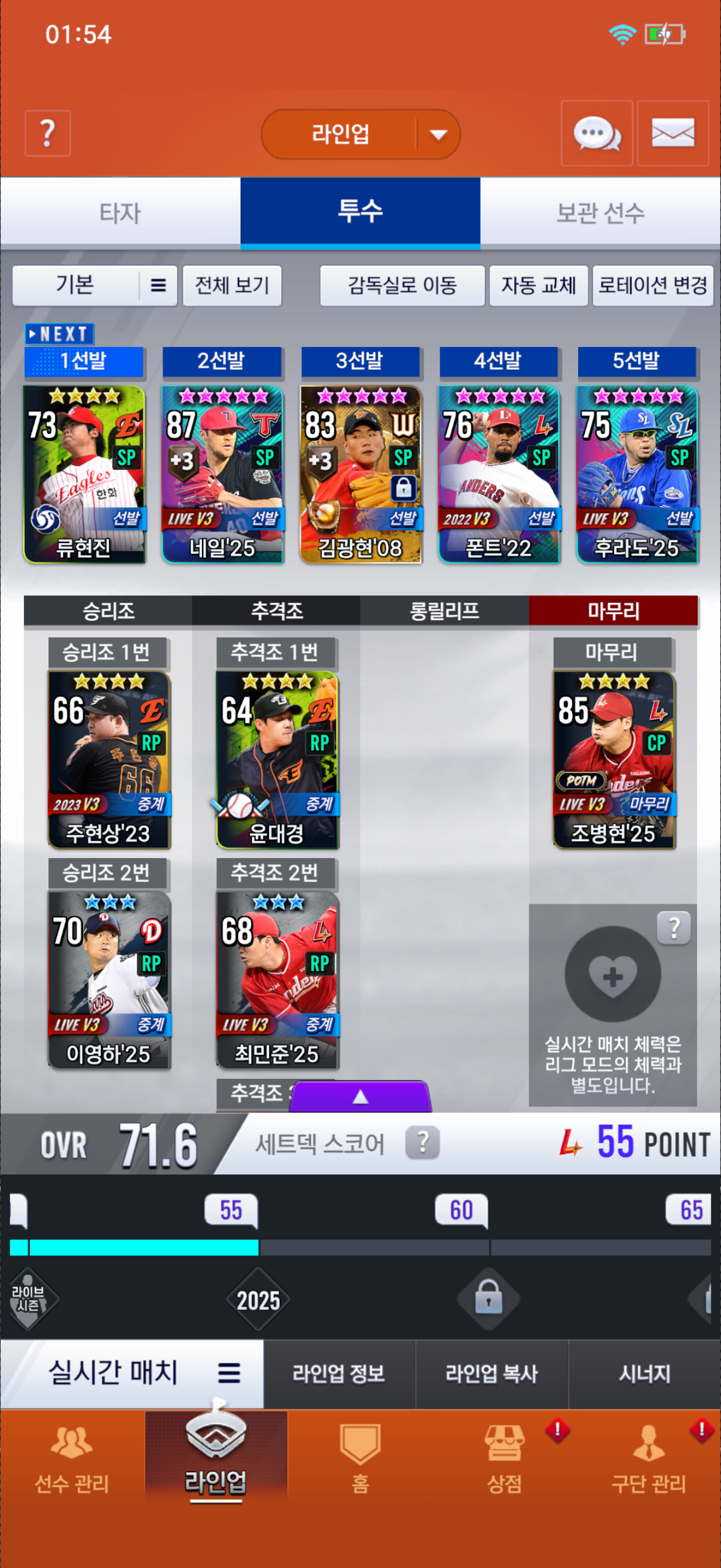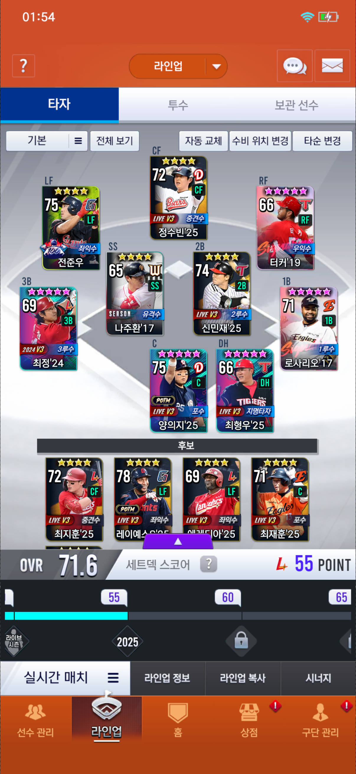 오버롤 71이고 한화 선수들이