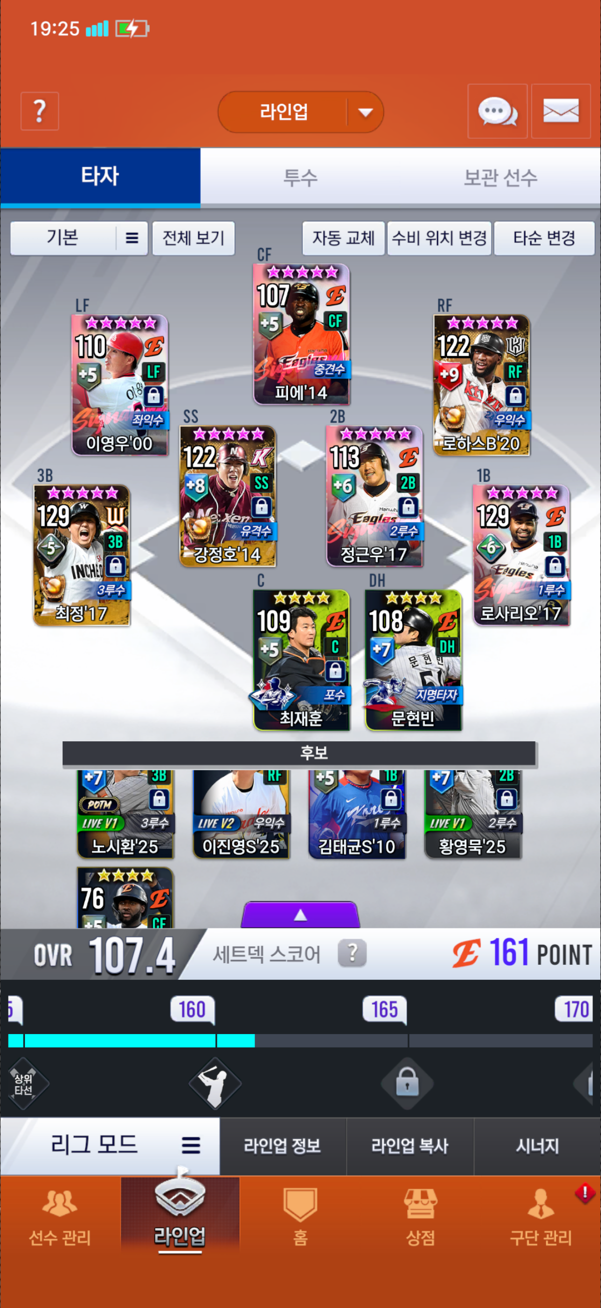 로하스각성이 좋을지 베테랑최재훈대신 양의지를 1각으로 사용할지 고민입니다