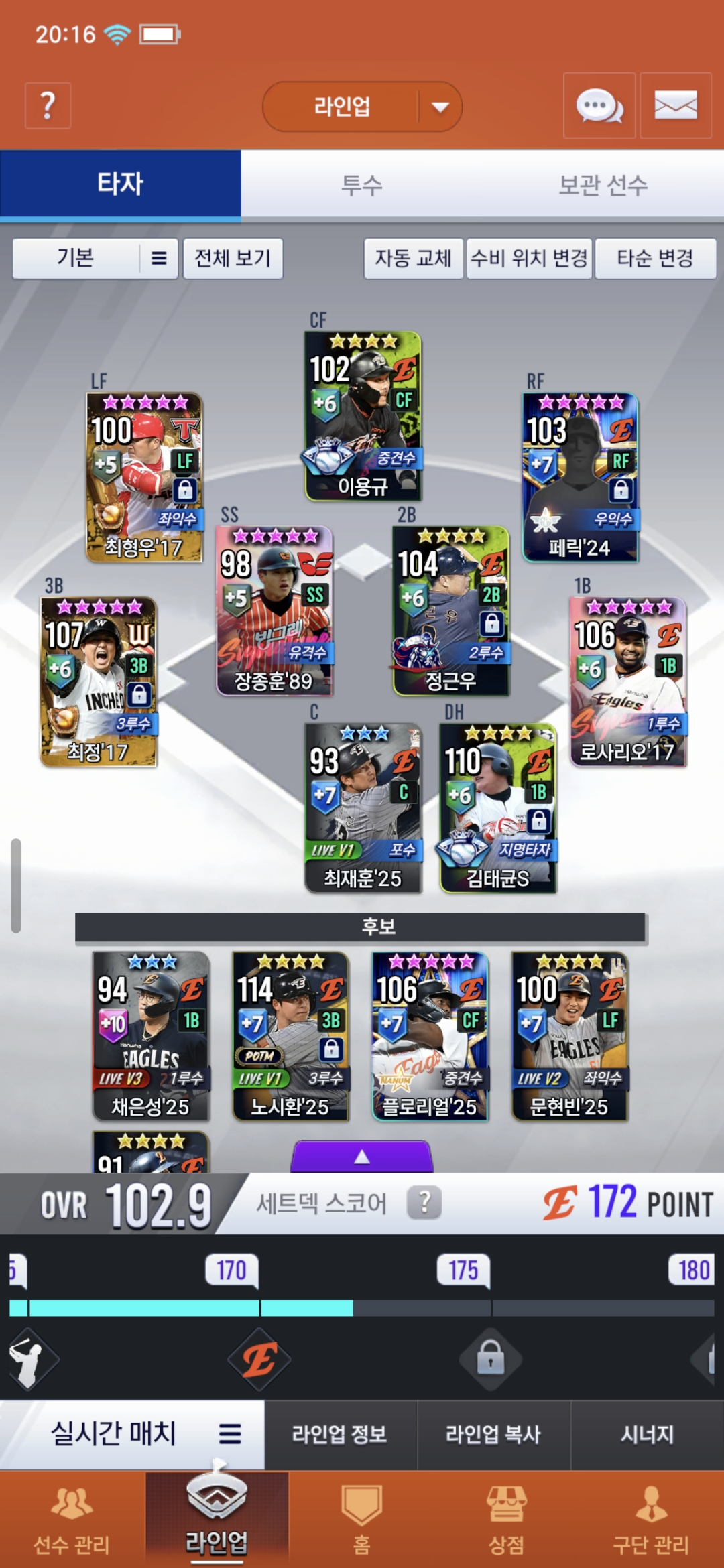 3차교환에서 16김재환,16테임즈,24구자욱떴습니다.