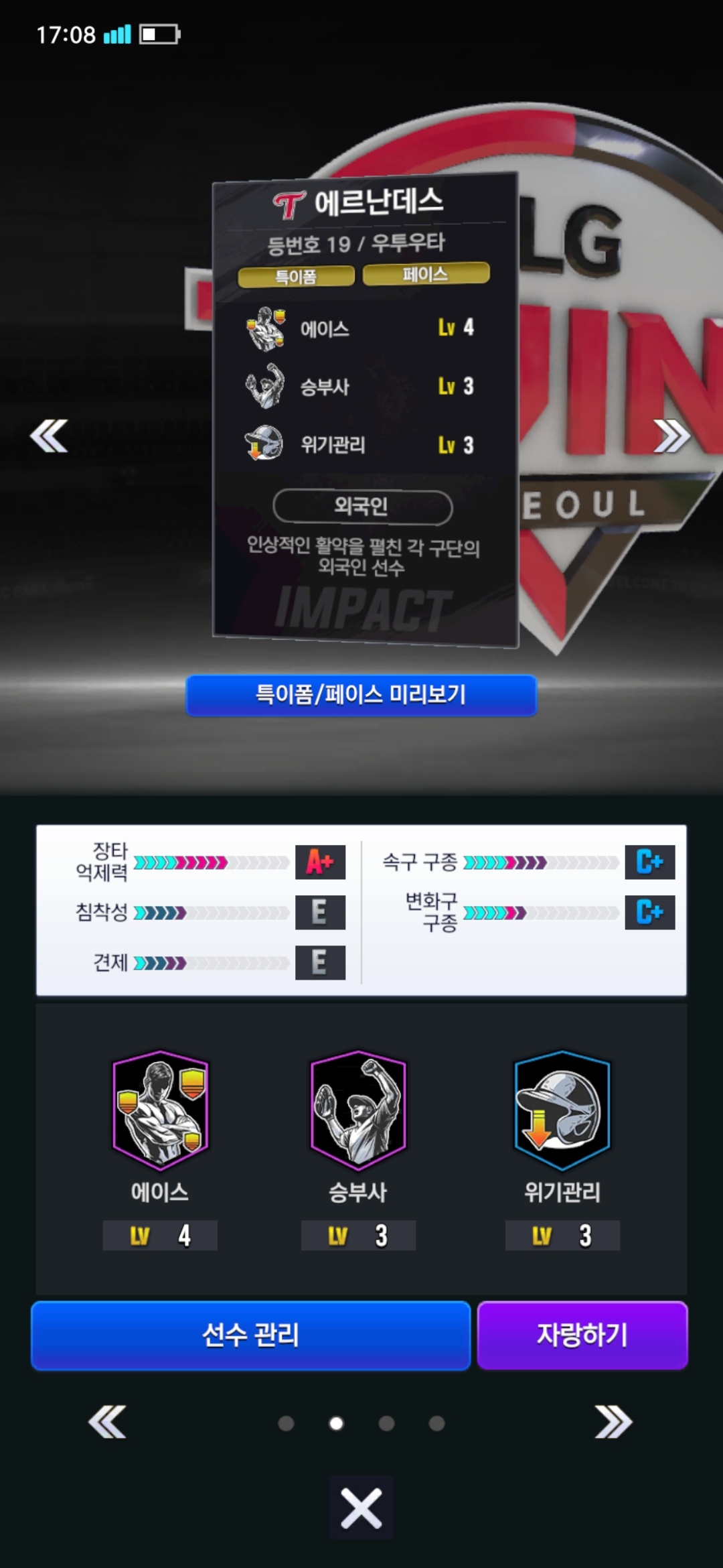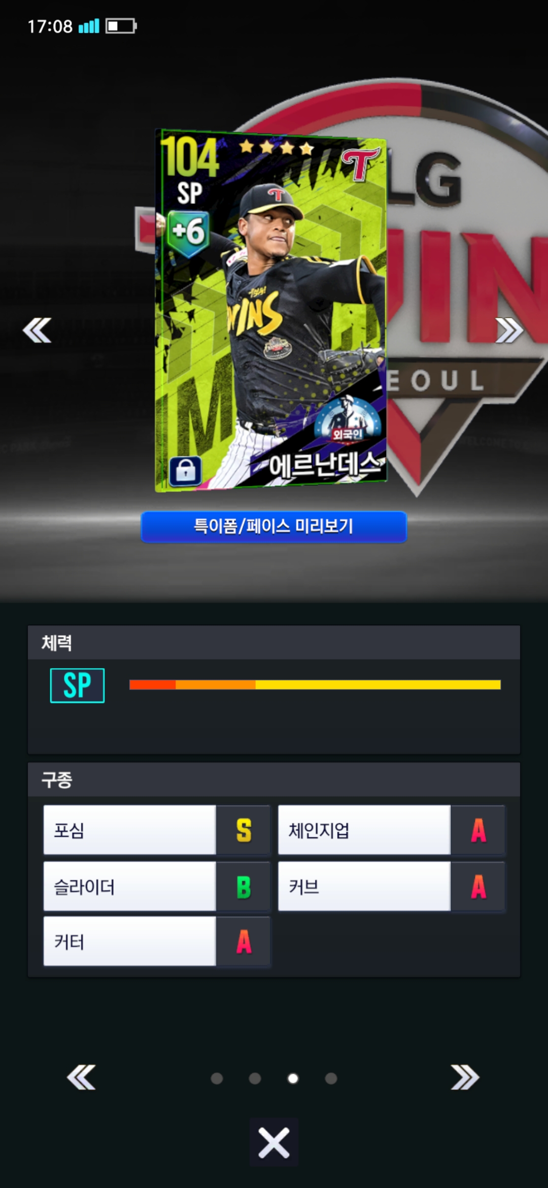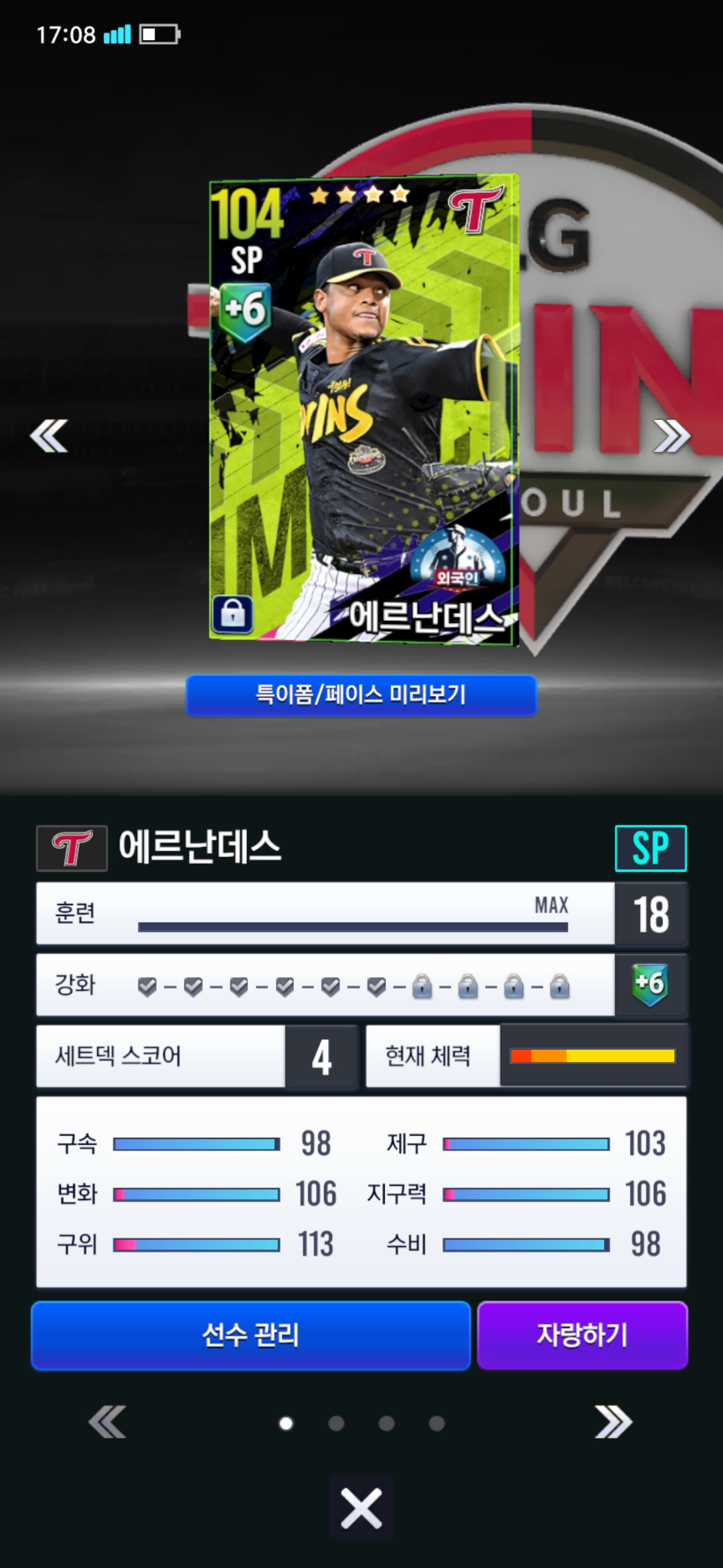정규시즌 스카우트로 임팩트 선택팩 먹어서 외국인 에르난데스 뽑았는데 이 정도면 능력치 괜찮을까요?