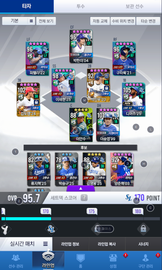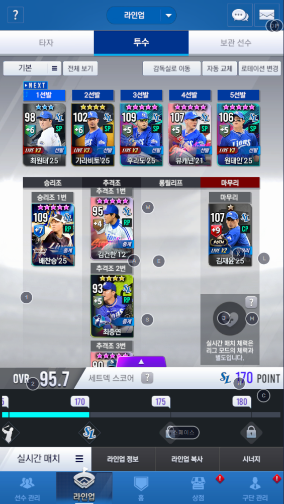 4.마무리 여사 오승환 있는데 세트덱 스코어 때문에 25김재윤 넣는건 오바인가요? 여사오승환 넣으면 세트덱 스코어가 1.3 정도 떨어지더라구요