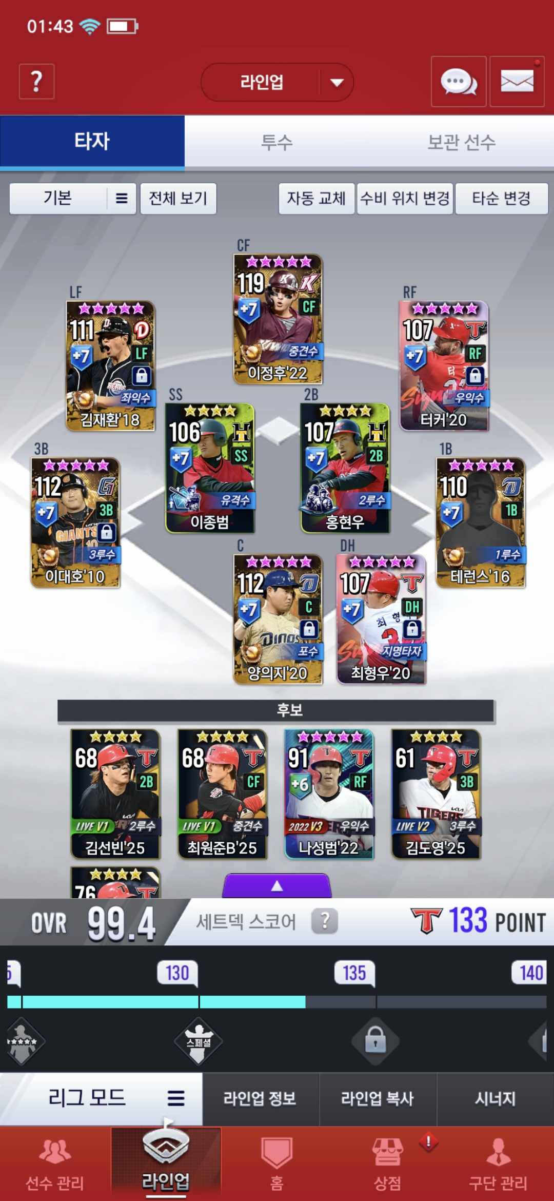기아 무과금인데 23페디가 떴습니다. 골글을 이미 자팀골글 포함 6개 사용중이여서 이정후를 버나디나로 교체하고 테임즈를 99승엽으로 쓴다했을때 어떻게 골글을 쓰는게 좋을까요? 골글을 하나더 빼야 할까요?