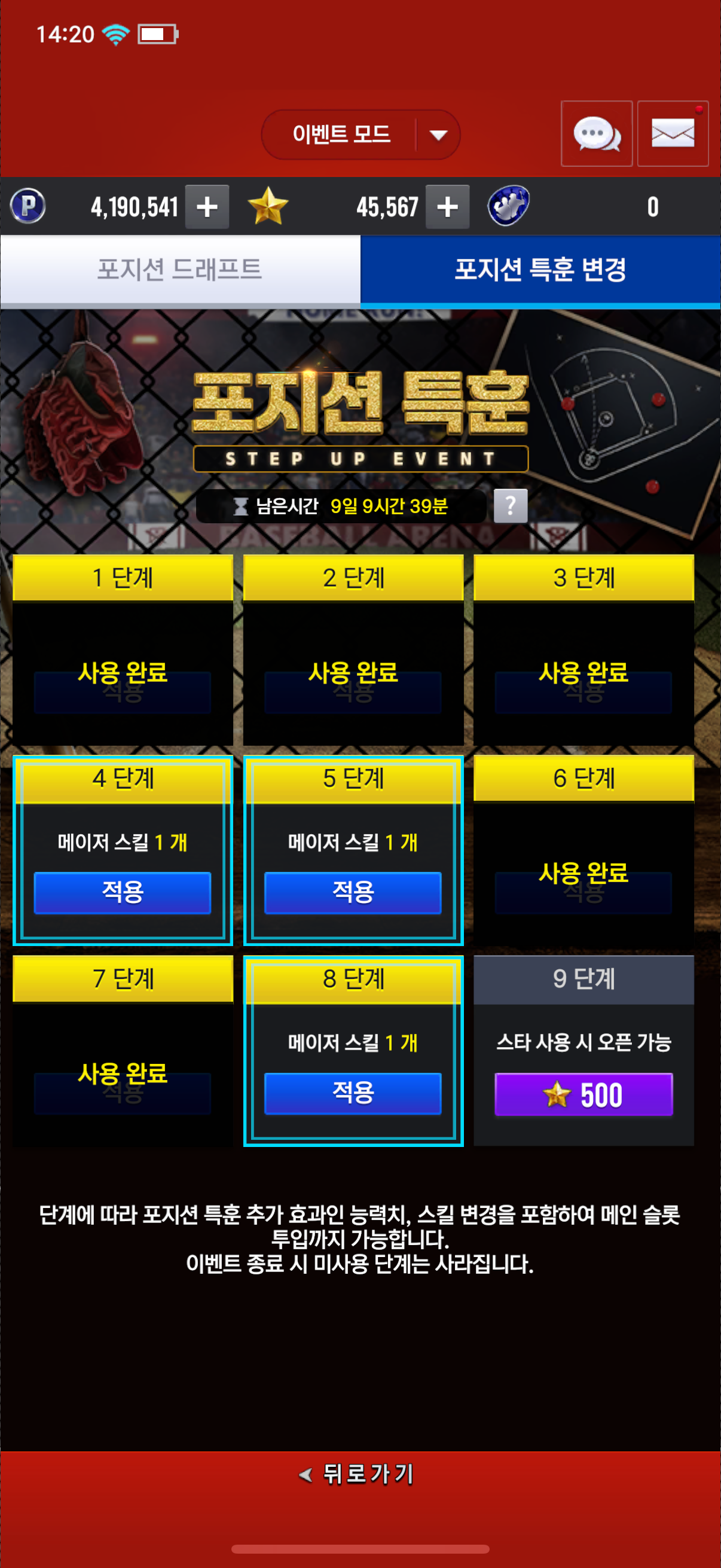 메이저스킬 적용시키려고 하면 가능한 선수가 없는데 어떻게 적용시키는건가요?