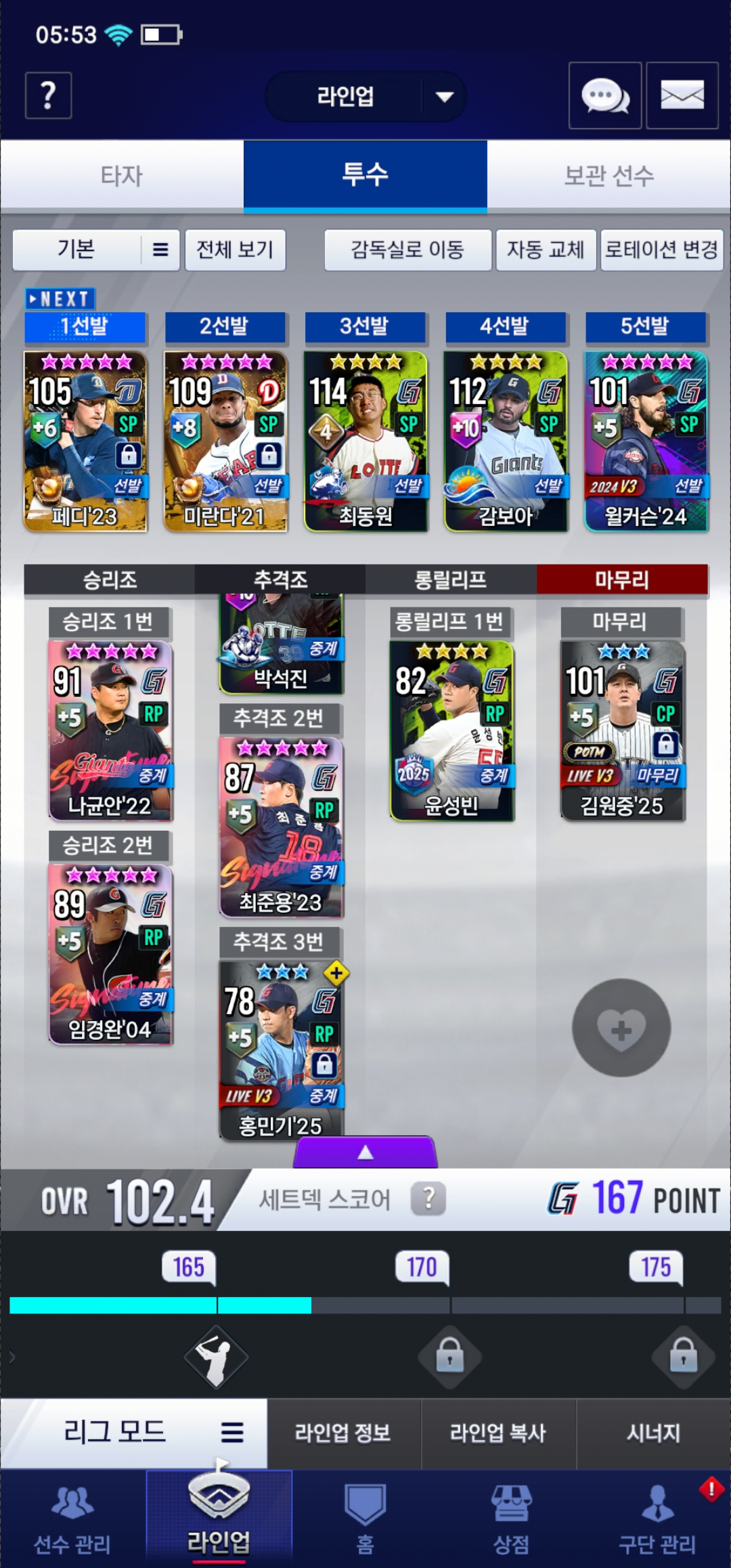 윤성빈 넣었는데 OVR이 오히려 떨어지네요
