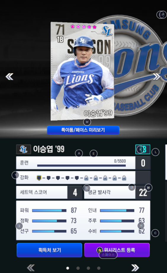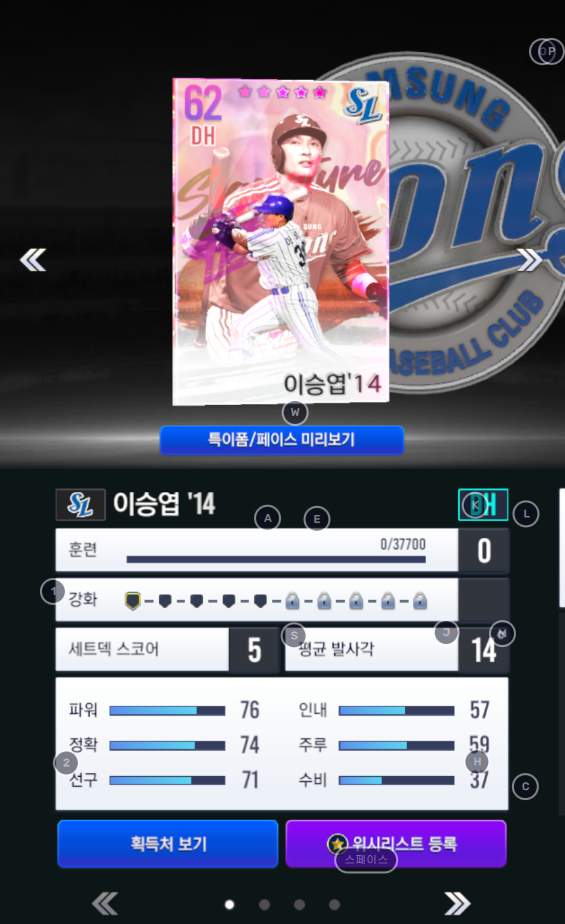 현재 마땅한 지명타자가 없어서 시즌 이승엽99 쓰고있는데요 시그니처3차영입에서 시그 이승엽14 이 나왔습니다